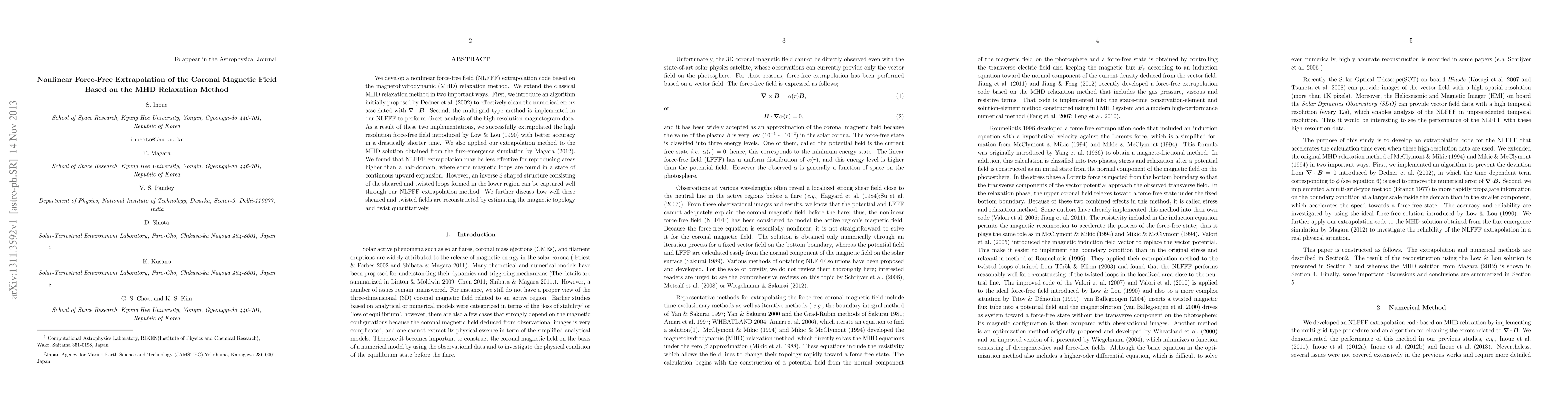 We develop a nonlinear force-free field (NLFFF) extrapolation code based on the magnetohydrodynamic (MHD) relaxation method. We extend the classical MHD relaxation method in two important ways. First, we introduce an algorithm initially proposed by cite{2002JCoPh.175..645D} to effectively clean the numerical errors associated with $nabla cdot vec{B}$. Second, the multi-grid type method is implemented in our NLFFF to perform direct analysis of the high-resolution magnetogram data. As a result of these two implementations, we successfully extrapolated the high resolution force-free field introduced by cite{1990ApJ...352..343L} with better accuracy in a drastically shorter time. We also applied our extrapolation method to the MHD solution obtained from the flux-emergence simulation by cite{2012ApJ...748...53M}. We found that NLFFF extrapolation may be less effective for reproducing areas higher than a half-domain, where some magnetic loops are found in a state of continuous upward expansion. However, an inverse S shaped structure consisting of the sheared and twisted loops formed in the lower region can be captured well through our NLFFF extrapolation method. We further discuss how well these sheared and twisted fields are reconstructed by estimating the magnetic topology and twist quantitatively.