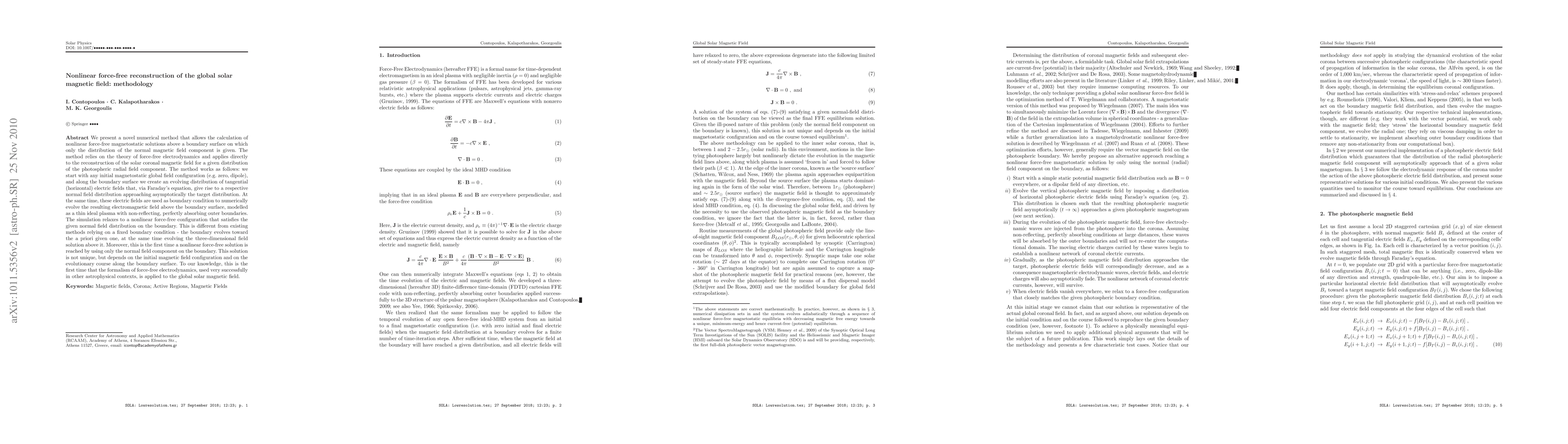 Researchers develop a new method to calculate nonlinear force-free magnetostatic solutions for the solar coronal magnetic field, using only the normal magnetic field component on the boundary surface.