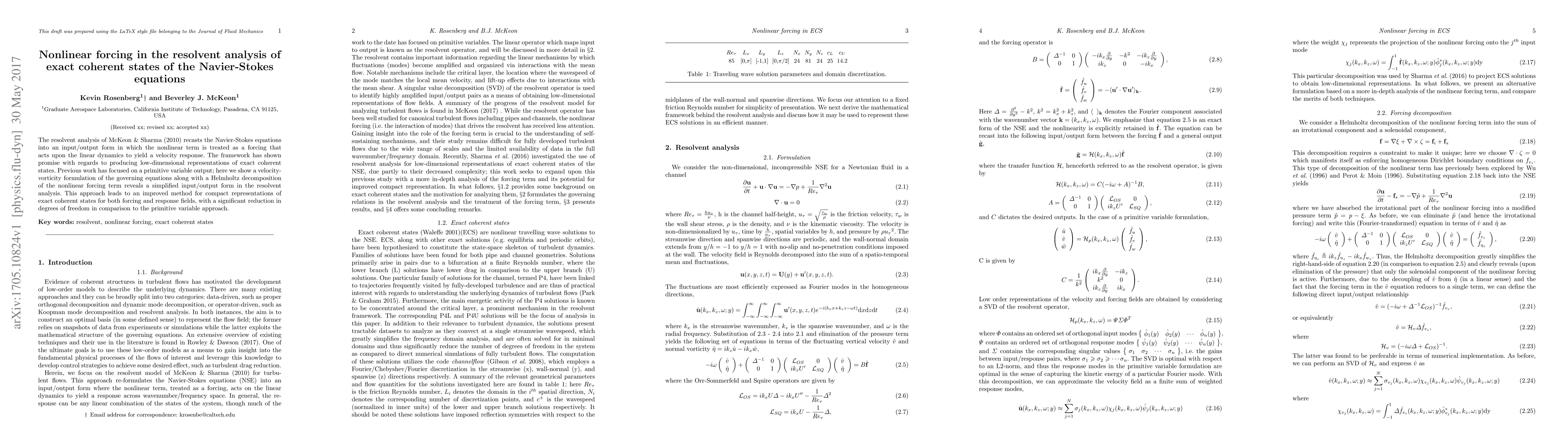 This paper presents a velocity-vorticity formulation in the resolvent analysis of the Navier-Stokes equations, simplifying the input/output framework by decomposing the nonlinear forcing term. This approach provides a more efficient method for representing exact coherent states with fewer degrees of freedom compared to the primitive variable approach.