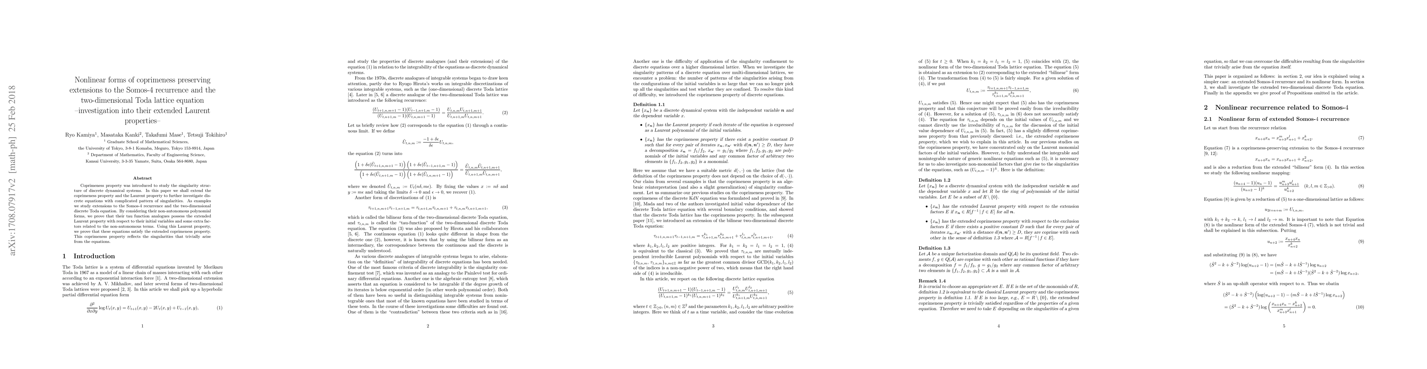 This paper extends the coprimeness and Laurent properties to the Somos-$4$ recurrence and the two-dimensional Toda lattice equation, revealing their extended Laurent properties and proving the extended coprimeness property, which reflects the singularities inherent in these discrete dynamical systems.