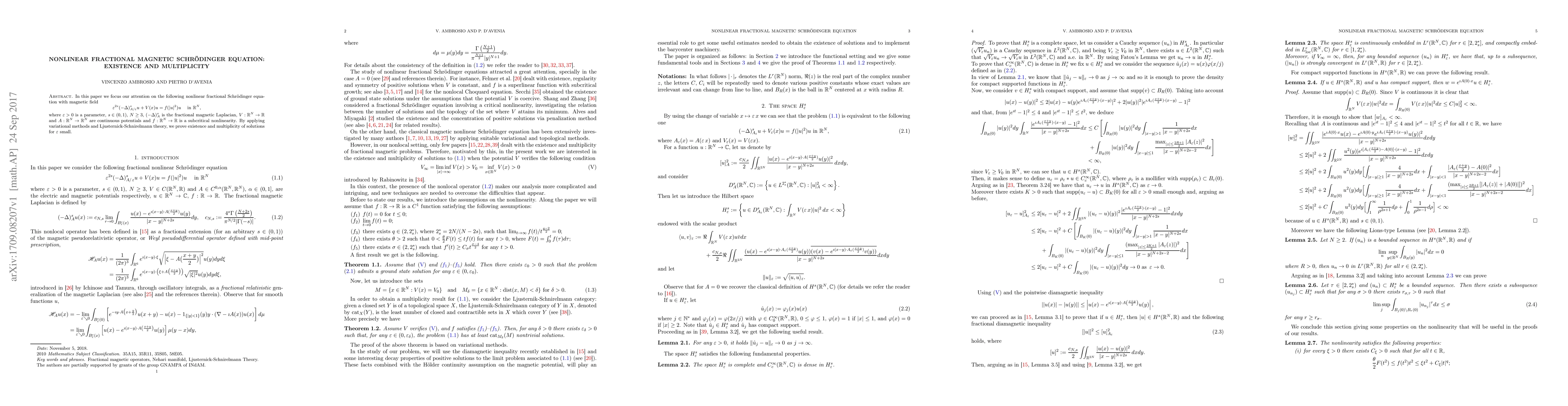This paper investigates the existence and multiplicity of solutions for a nonlinear fractional magnetic Schrödinger equation with a magnetic field, proving results using variational methods and Ljusternik-Schnirelmann theory for small parameter values.