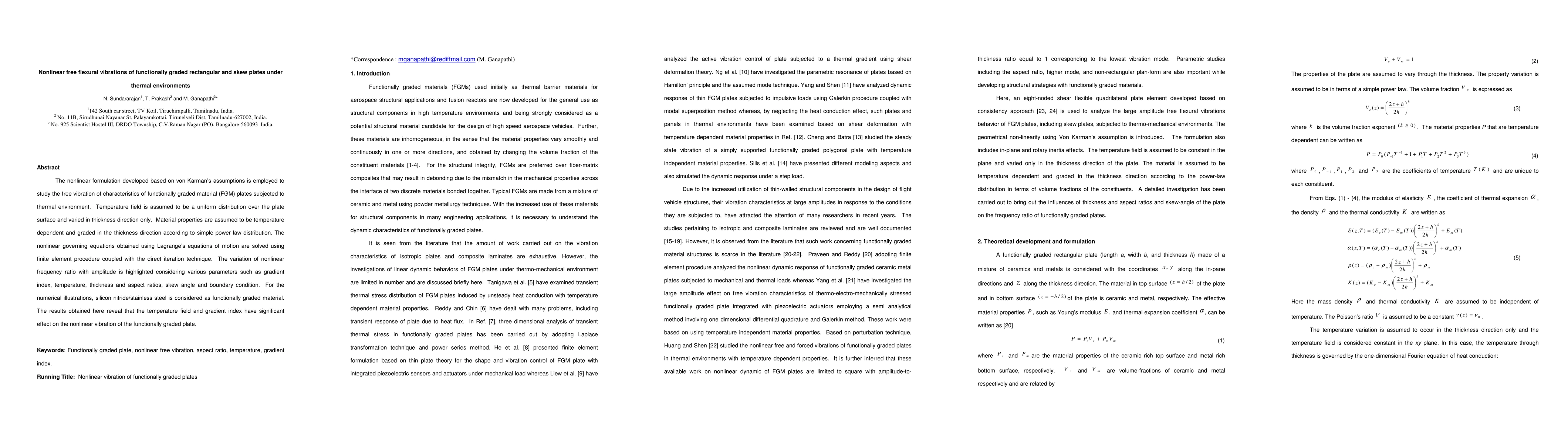 This paper studies the nonlinear free flexural vibrations of functionally graded plates in thermal environments using von Karman's assumptions. The study reveals significant effects of temperature and gradient index on the nonlinear vibration characteristics, solved via a finite element method with direct iteration.