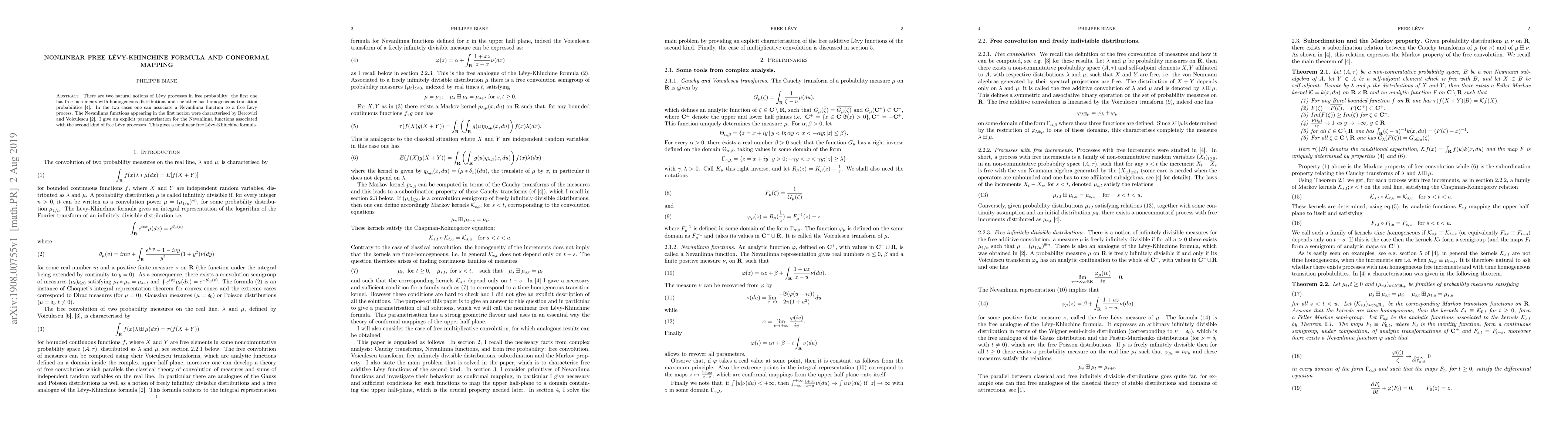 Researchers developed a nonlinear free Lévy-Khinchine formula for a type of free Lévy process with homogeneous transition probabilities, providing an explicit parametrisation for associated Nevanlinna functions.