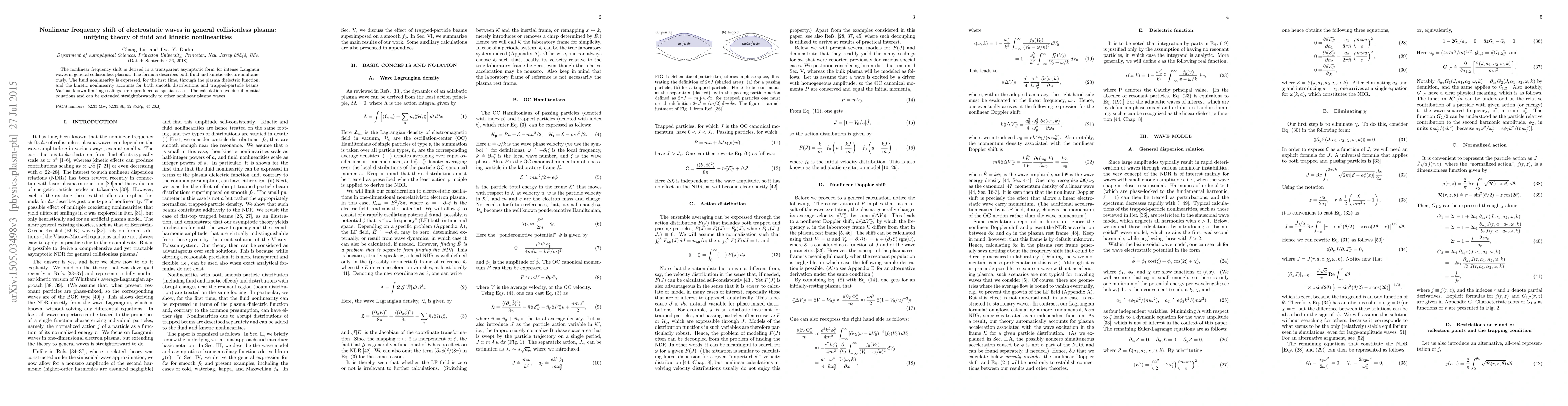 This paper derives a unified formula for the nonlinear frequency shift of intense Langmuir waves in collisionless plasmas, encompassing both fluid and kinetic effects. The approach uses the plasma dielectric function to express fluid nonlinearity and accounts for kinetic effects from smooth distributions and trapped-particle beams, without relying on differential equations.