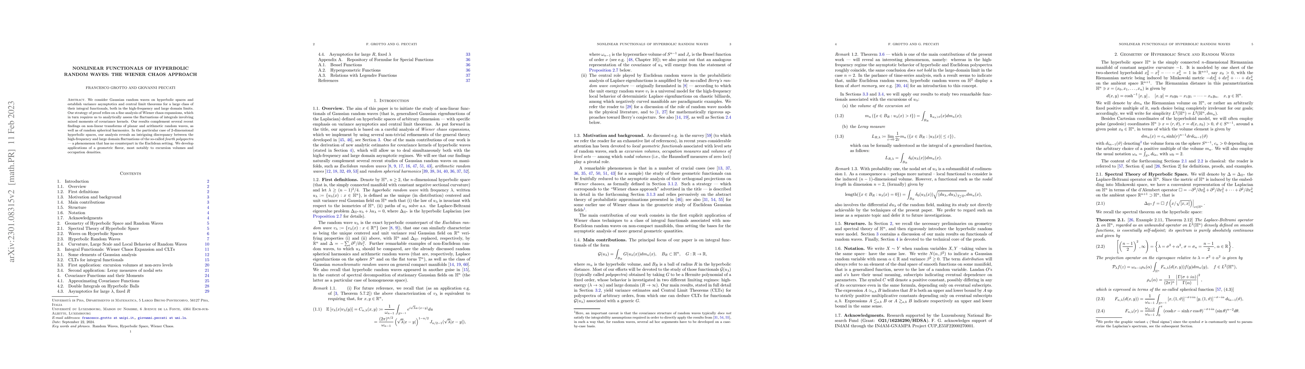 This paper investigates Gaussian random waves on hyperbolic spaces, establishing variance asymptotics and central limit theorems for their integral functionals. The analysis leverages Wiener chaos expansions and reveals unique discrepancies in fluctuations for fourth polyspectra in 2D hyperbolic spaces compared to Euclidean settings.