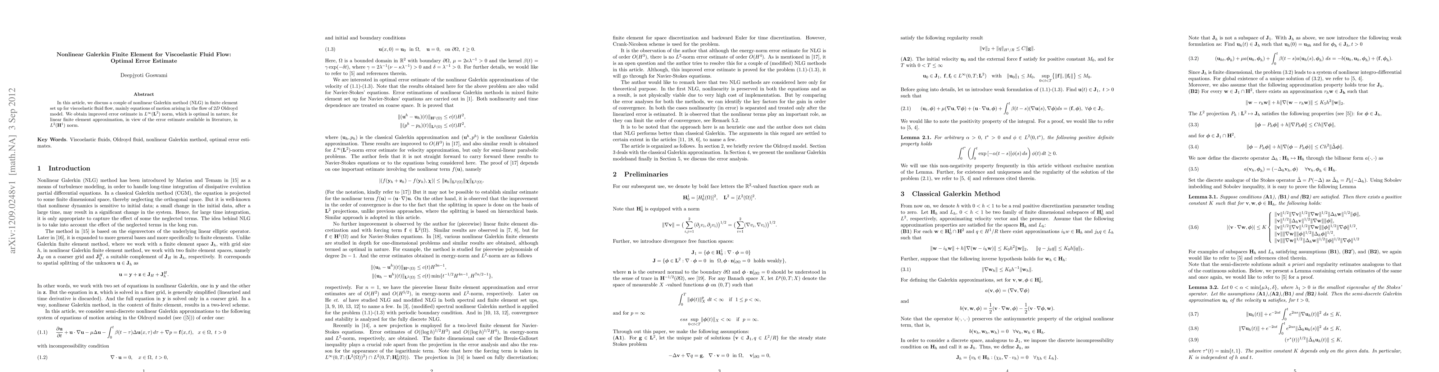 Summary: This paper presents a nonlinear Galerkin finite element method for modeling viscoelastic fluid flow, specifically the 2D Oldroyd model. It achieves an optimal error estimate in the $L^{\infty}(\bL^2)$ norm, surpassing existing $L^2(\bH^1)$ norm estimates in the literature.