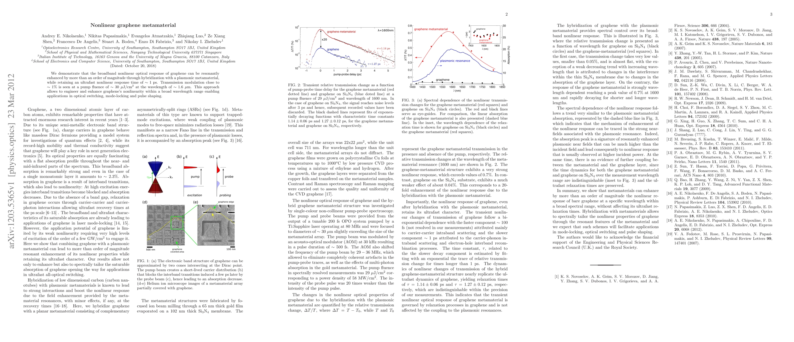 Researchers enhanced graphene's nonlinear optical response by hybridizing it with a plasmonic metamaterial, achieving a 10-fold increase in nonlinearity while retaining ultrafast response times.