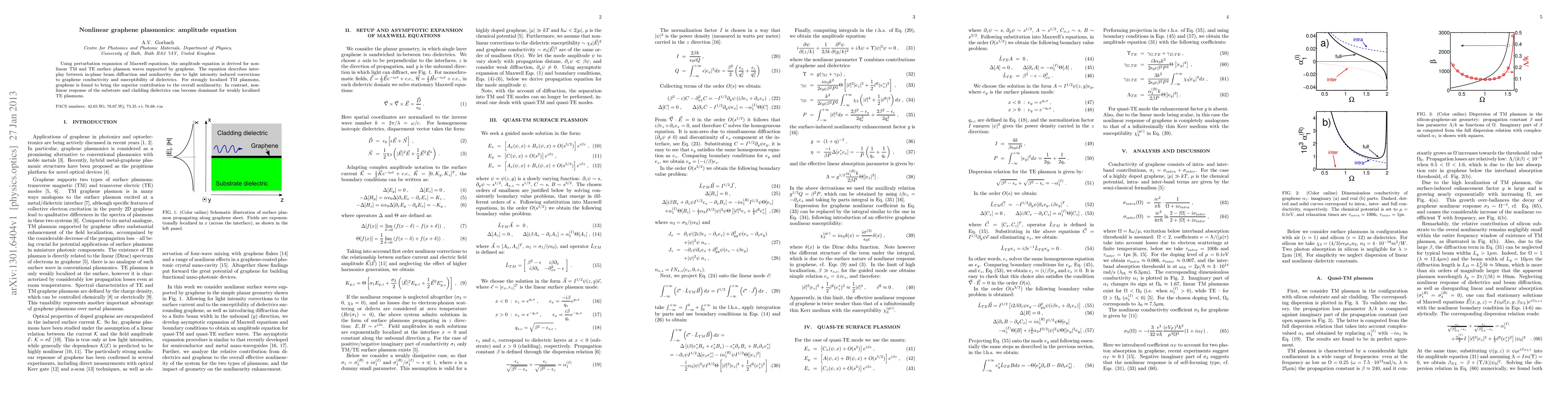 Researchers derive an amplitude equation for nonlinear surface plasmon waves on graphene, showing that graphene significantly enhances nonlinearity in strongly localized TM plasmons, while substrate dielectrics dominate weakly localized TE plasmons.