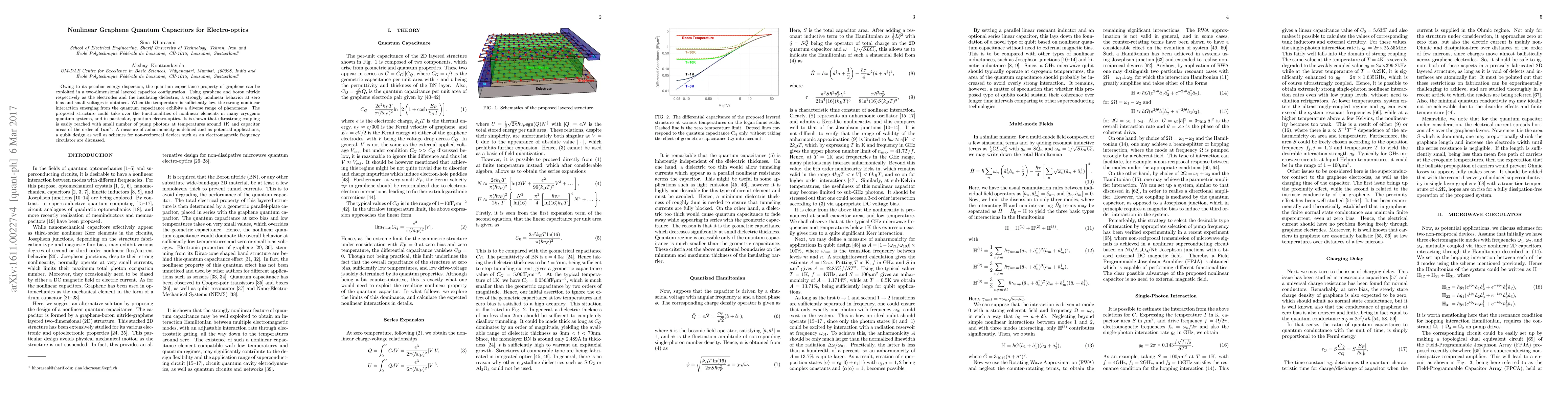 This research proposes a graphene quantum capacitor using graphene and boron nitride layers that exhibits strong nonlinear behavior at cryogenic temperatures, enabling functionalities in quantum electro-optics and potential applications in qubit design and non-reciprocal devices like frequency circulators. Ultrastrong coupling is achievable with a few pump photons in small areas of around $1\mu{\textrm{m}}^2$.