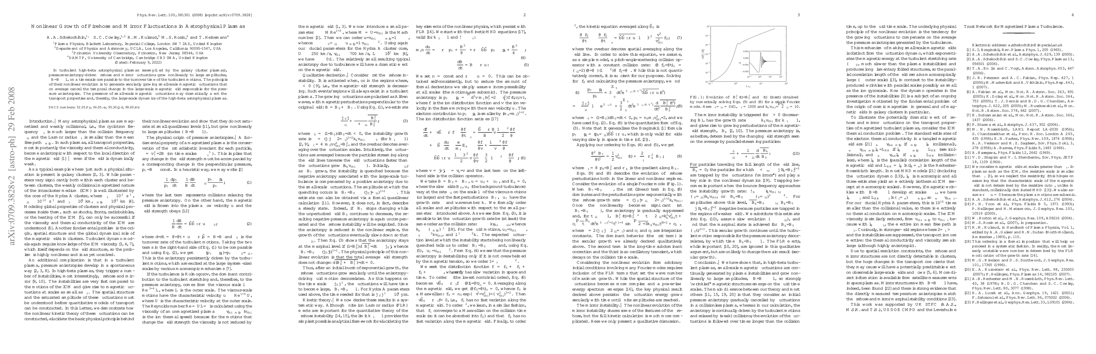 The paper presents a systematic kinetic theory for the nonlinear evolution of firehose and mirror instabilities, elucidating the underlying physical principles and demonstrating their growth to large amplitudes.