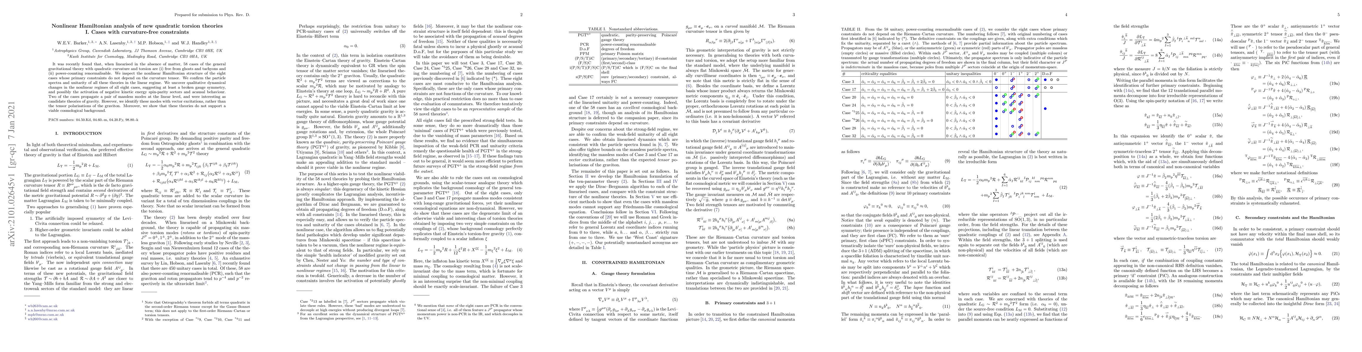 It was recently found that, when linearised in the absence of matter, 58 cases of the general gravitational theory with quadratic curvature and torsion are (i) free from ghosts and tachyons and (ii) power-counting renormalisable. We inspect the nonlinear Hamiltonian structure of the eight cases whose primary constraints do not depend on the curvature tensor. We confirm the particle spectra and unitarity of all these theories in the linear regime. We uncover qualitative dynamical changes in the nonlinear regimes of all eight cases, suggesting at least a broken gauge symmetry, and possibly the activation of negative kinetic energy spin-parity sectors and acausal behaviour. Two of the cases propagate a pair of massless modes at the linear level, and were interesting as candidate theories of gravity. However, we identify these modes with vector excitations, rather than the tensor polarisations of the graviton. Moreover, we show that these theories do not support a viable cosmological background.