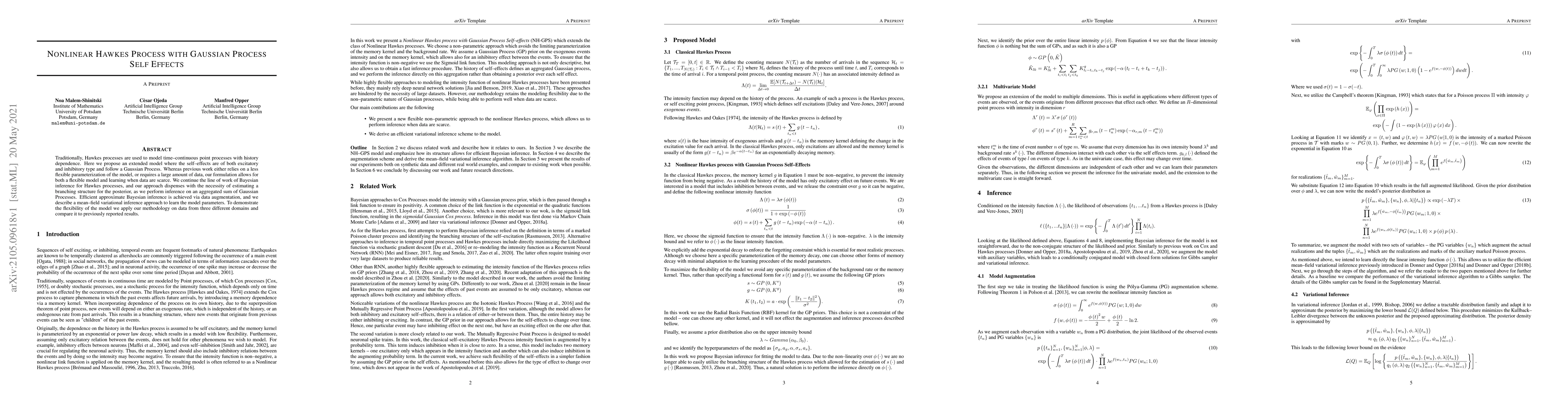 This paper proposes a new Hawkes process model that incorporates both excitatory and inhibitory effects through Gaussian processes, allowing for flexible modeling with limited data. The approach enables efficient approximate Bayesian inference via data augmentation and mean-field variational inference.