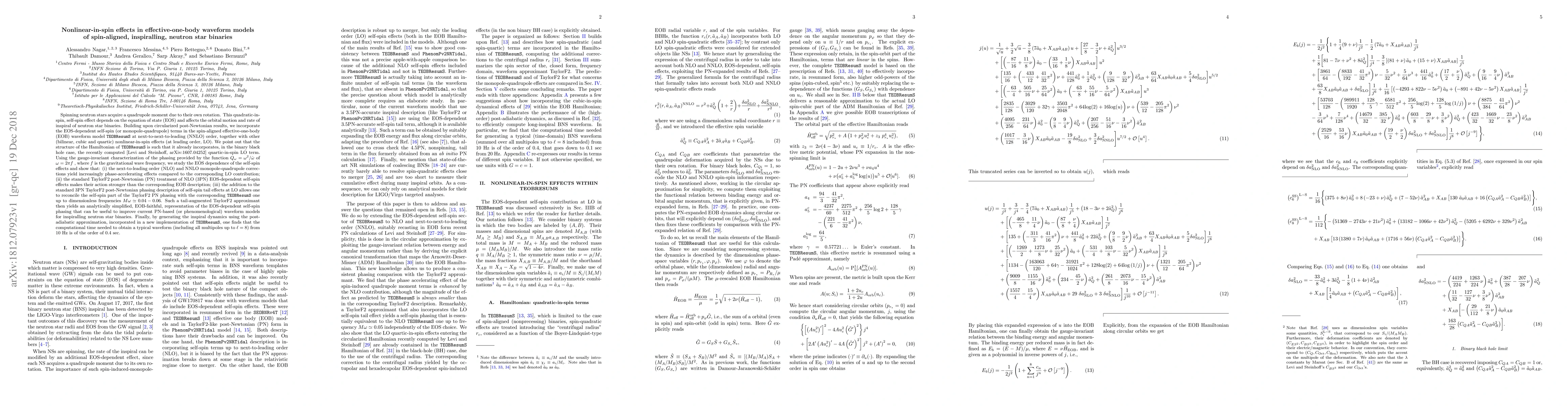 Spinning neutron stars acquire a quadrupole moment due to their own rotation. This quadratic-in-spin, self-spin effect depends on the equation of state (EOS) and affects the orbital motion and rate of inspiral of neutron star binaries. We incorporate the EOS-dependent self-spin (or monopole-quadrupole) terms in the spin-aligned effective-one-body (EOB) waveform model TEOBResumS at next-to-next-to-leading (NNLO) order, together with other (bilinear, cubic and quartic) nonlinear-in-spin effects (at leading order, LO). The structure of the Hamiltonian of TEOBResumS is such that it already incorporates, in the binary black hole case, the recently computed quartic-in-spin LO term. Using the gauge-invariant characterization of the phasing provided by the function $Q_\omega=\omega^2/\dot{\omega}$ of $\omega=2\pi f$ , where $f$ is the gravitational wave frequency, we study the EOS dependence of the self-spin effects and show that: (i) the next-to-leading order (NLO) and NNLO monopole-quadrupole corrections yield increasingly phase-accelerating effects compared to the corresponding LO contribution; (ii) the standard TaylorF2 post-Newtonian (PN) treatment of NLO (3PN) EOS-dependent self-spin effects makes their action stronger than the corresponding EOB description; (iii) the addition to the standard 3PN TaylorF2 post-Newtonian phasing description of self-spin tail effects at LO allows one to reconcile the self-spin part of the TaylorF2 PN phasing with the corresponding TEOBResumS one up to dimensionless frequencies $M\omega\simeq 0.04-0.06$. By generating the inspiral dynamics using the post-adiabatic approximation, incorporated in a new implementation of TEOBResumS, one finds that the computational time needed to obtain a typical waveform (including all multipoles up to $\ell=8$) from 10 Hz is of the order of 0.4 sec.