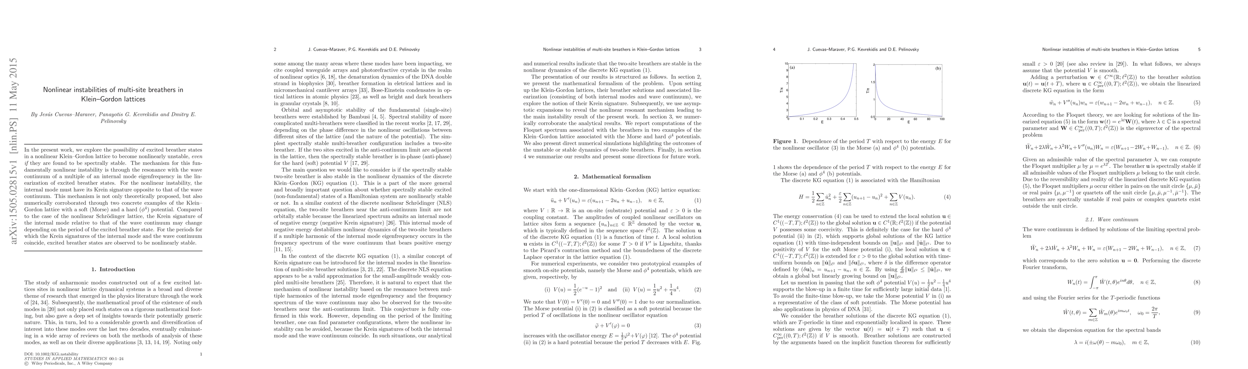 This paper investigates the nonlinear instability of excited breather states in Klein-Gordon lattices, demonstrating that even spectrally stable breathers can become unstable due to resonance with the wave continuum. Numerical examples confirm this instability mechanism, which depends on the Krein signature of the internal mode relative to the wave continuum.