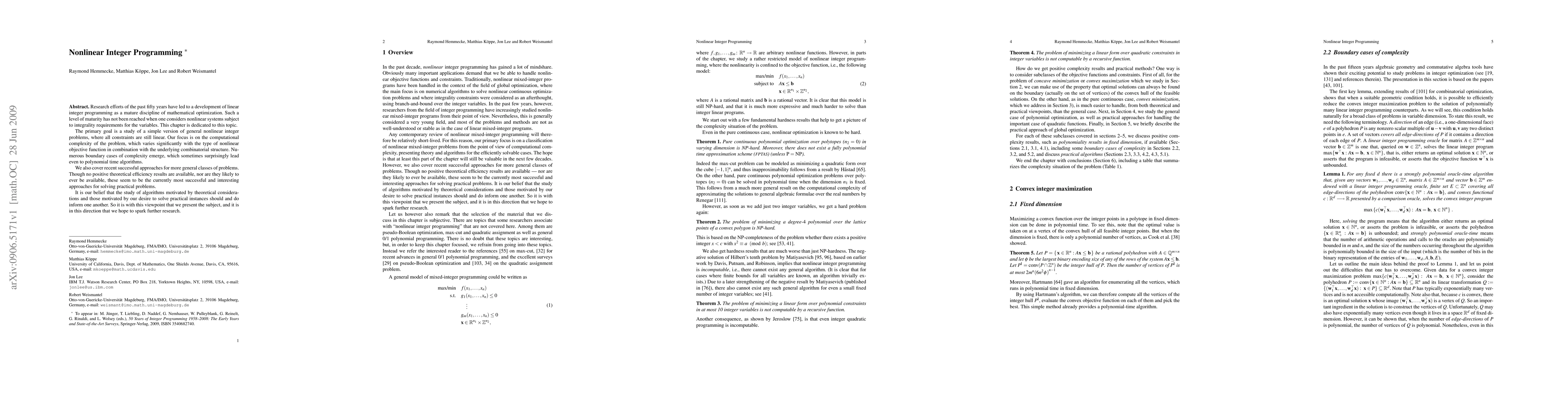 This paper explores nonlinear integer programming, focusing on computational complexity and practical approaches for solving problems with linear constraints but nonlinear objectives. It highlights the significant complexity variations and recent successful methods for more general problem classes, emphasizing the interplay between theoretical and practical algorithm development.