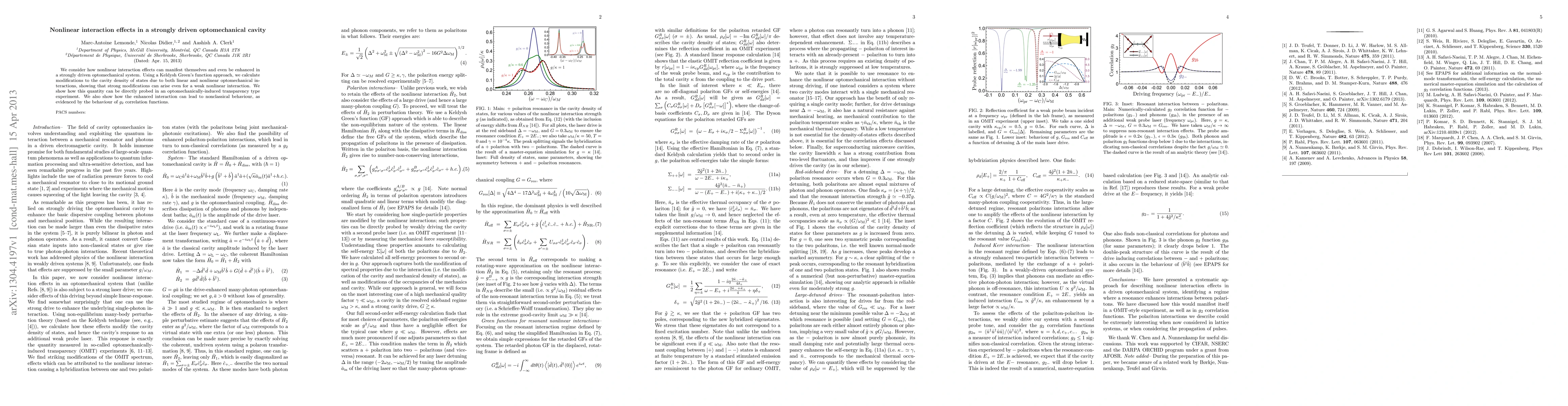 This paper investigates nonlinear interaction effects in a strongly driven optomechanical cavity, demonstrating significant modifications to the cavity density of states through both linear and nonlinear interactions, which can be probed in optomechanically-induced transparency experiments. It also reveals enhanced interactions leading to nonclassical behavior, as shown by g_2 correlation functions.