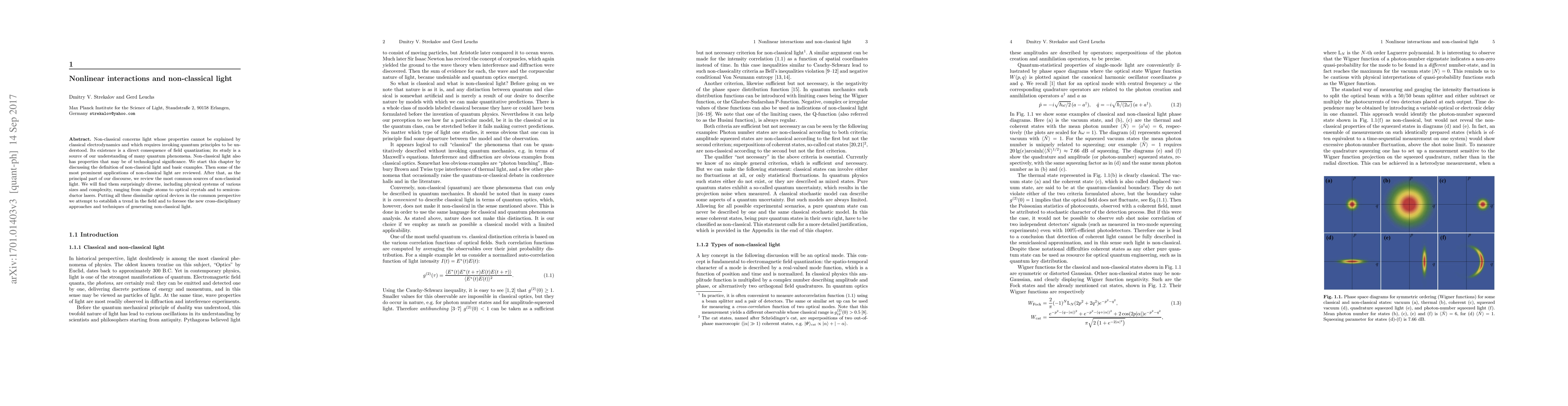 Non-classical concerns light whose properties cannot be explained by classical electrodynamics and which requires invoking quantum principles to be understood. Its existence is a direct consequence of field quantization; its study is a source of our understanding of many quantum phenomena. Non-classical light also has properties that may be of technological significance. We start this chapter by discussing the definition of non-classical light and basic examples. Then some of the most prominent applications of non-classical light are reviewed. After that, as the principal part of our discourse, we review the most common sources of non-classical light. We will find them surprisingly diverse, including physical systems of various sizes and complexity, ranging from single atoms to optical crystals and to semiconductor lasers. Putting all these dissimilar optical devices in the common perspective we attempt to establish a trend in the field and to foresee the new cross-disciplinary approaches and techniques of generating non-classical light.