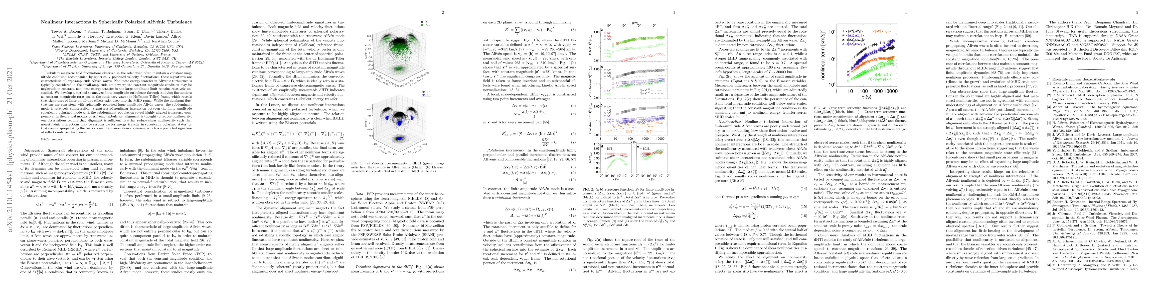 Turbulent magnetic field fluctuations observed in the solar wind often maintain a constant magnitude condition accompanied by spherically polarized velocity fluctuations; these signatures are characteristic of large-amplitude Alfv\'{e}n waves. Nonlinear energy transfer in Alfv\'{e}nic turbulence is typically considered in the small-amplitude limit where the constant magnitude condition may be neglected; in contrast, nonlinear energy transfer in the large-amplitude limit remains relatively unstudied. We develop a method to analyze finite-amplitude turbulence through studying fluctuations as constant magnitude rotations in the stationary wave (de Hoffmann-Teller) frame, which reveals that signatures of finite-amplitude effects exist deep into the MHD range. While the dominant fluctuations are consistent with spherically-polarized large-amplitude Alfv\'{e}n waves, the subdominant mode is relatively compressible. Signatures of nonlinear interaction between the finite-amplitude spherically polarized mode with the subdominant population reveal highly aligned transverse components. In theoretical models of Alfv\'{e}nic turbulence, alignment is thought to reduce nonlinearity; our observations require that alignment is sufficient to either reduce shear nonlinearity such that non-Alfv\'{e}nic interactions may be responsible for energy transfer in spherically polarized states, or that counter-propagating fluctuations maintain anomalous coherence, which is a predicted signature of reflection-driven turbulence.
