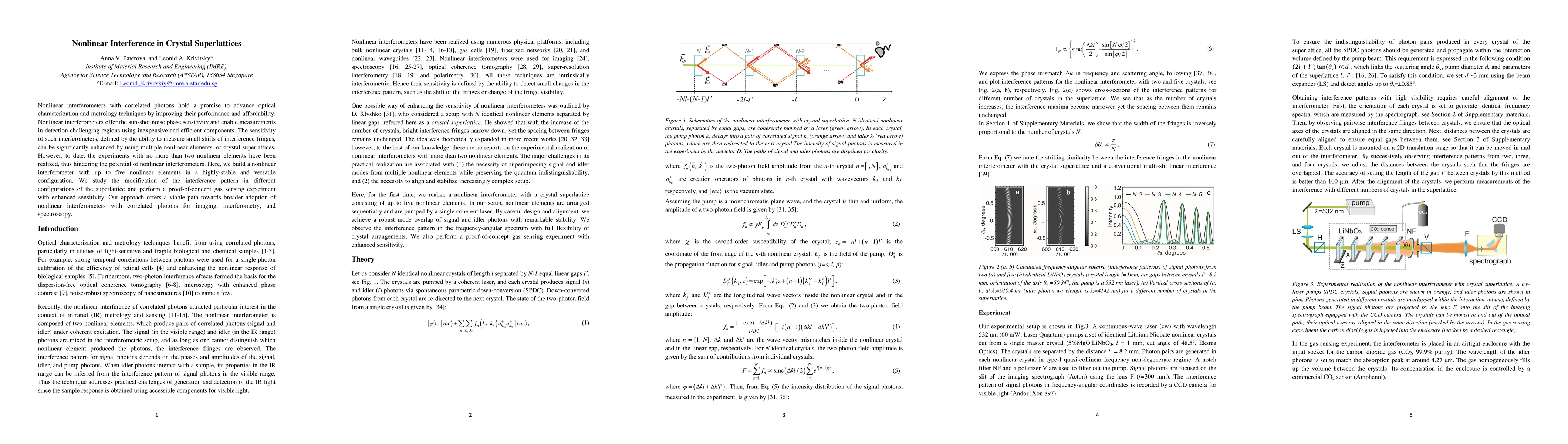 This paper develops a nonlinear interferometer with up to five nonlinear elements in a crystal superlattice, enhancing interference pattern sensitivity and enabling improved gas sensing. The proposed configuration promises to advance optical characterization and metrology techniques through better performance and affordability.