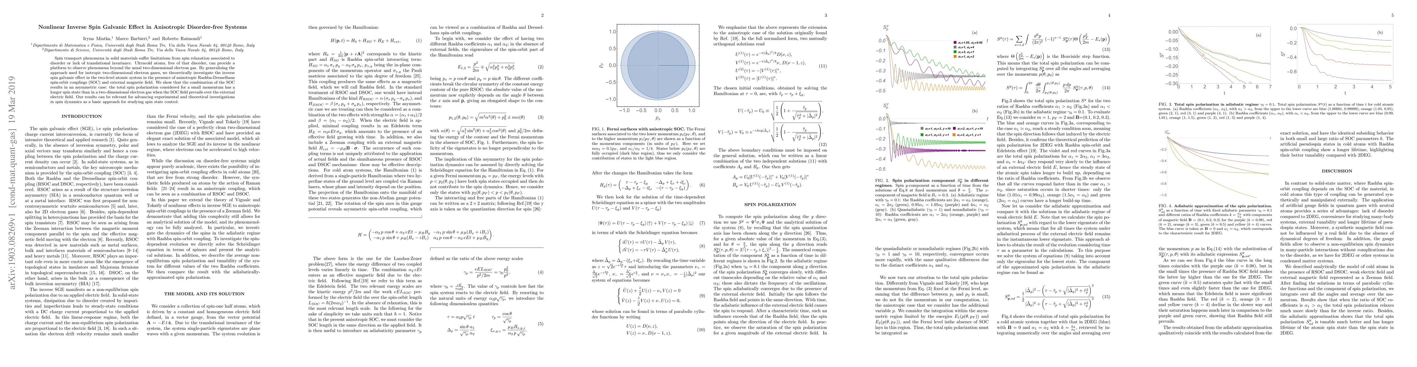 This paper investigates the nonlinear inverse spin galvanic effect in anisotropic, disorder-free systems using ultracold atoms. It demonstrates that the combination of anisotropic Rashba-Dresselhaus spin-orbit couplings and an external magnetic field leads to a longer spin state polarization compared to conventional two-dimensional electron gas systems, potentially advancing spin dynamics research.