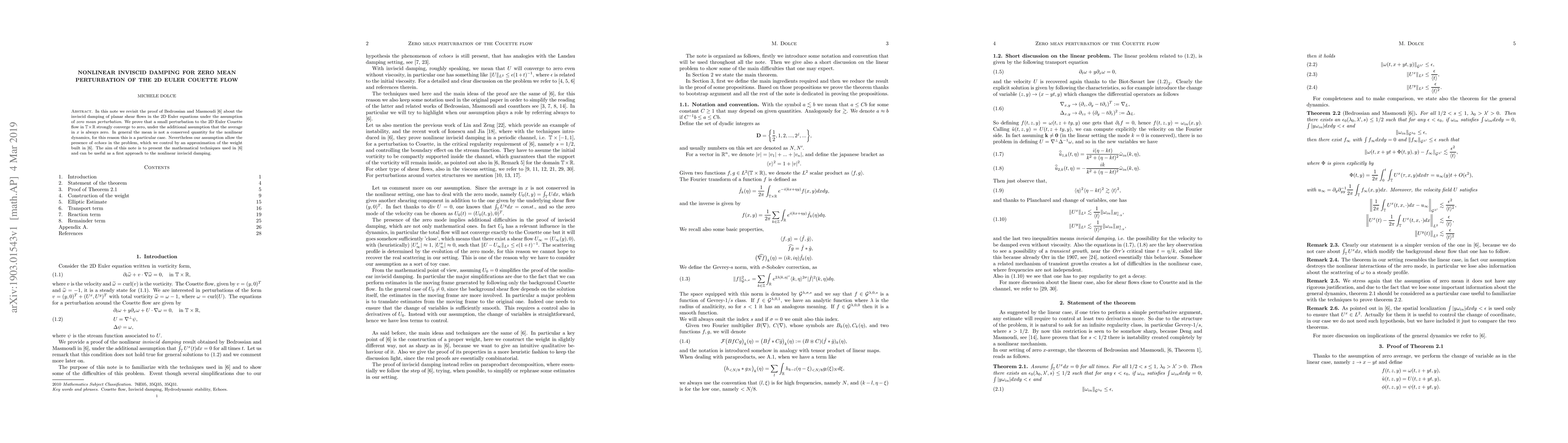 This paper revisits the proof of inviscid damping for zero mean perturbations in 2D Euler Couette flow, showing that small perturbations strongly converge to zero. The authors control echoes using techniques from a prior work, focusing on the mathematical methods relevant to nonlinear inviscid damping.