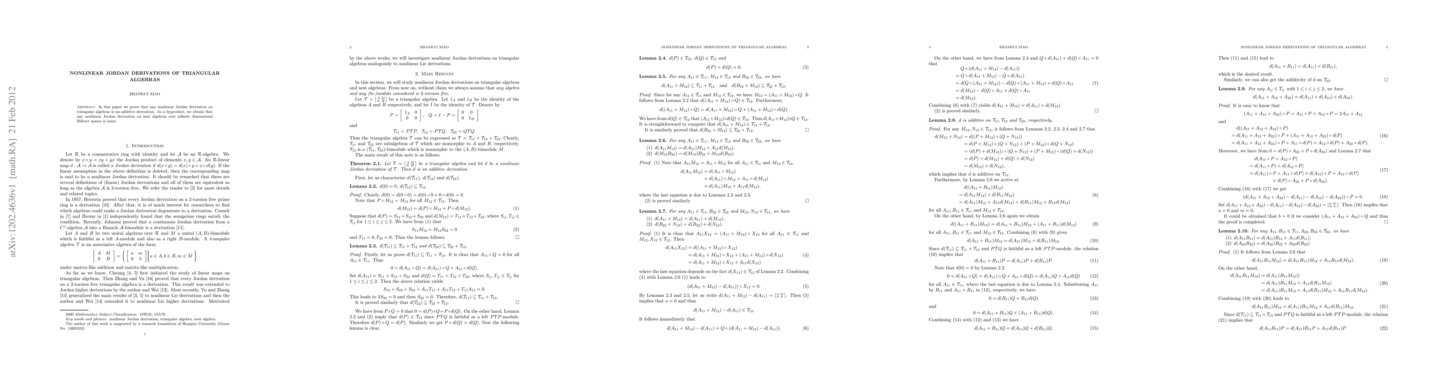 Summary: This paper demonstrates that any nonlinear Jordan derivation on triangular algebras is equivalent to an additive derivation, and as a result, any such derivation on nest algebras over infinite-dimensional Hilbert spaces is inner.