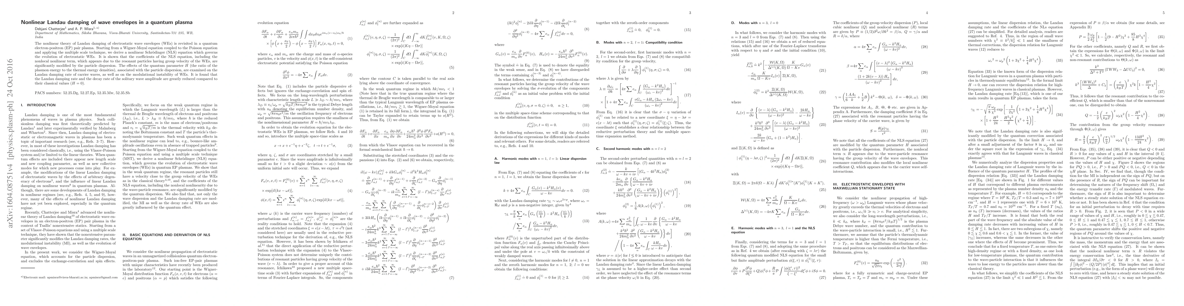 This paper explores the nonlinear Landau damping of electrostatic wave envelopes in a quantum electron-positron plasma, deriving a modified nonlinear Schrödinger equation that accounts for quantum effects. The study finds that the quantum parameter significantly reduces the Landau damping rate and the decay rate of solitary wave amplitudes compared to classical scenarios.