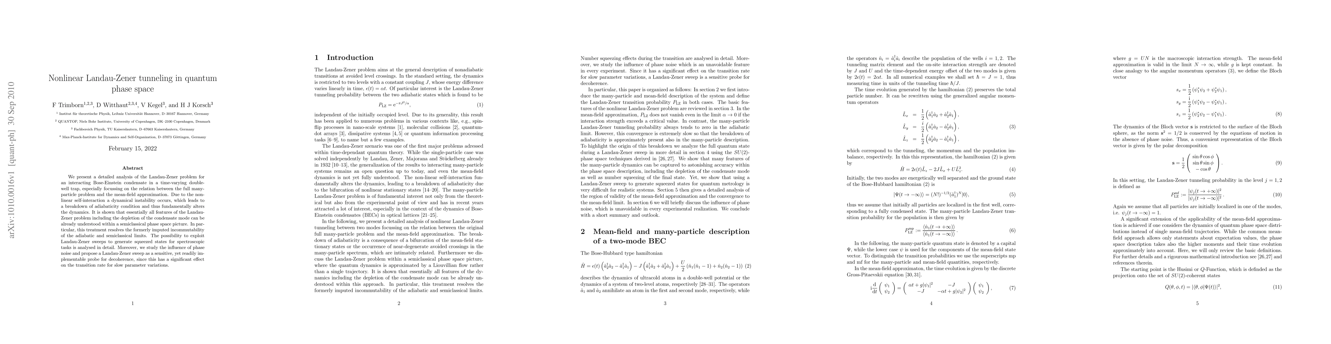 This paper analyzes nonlinear Landau-Zener tunneling in a Bose-Einstein condensate, revealing how dynamical instability due to self-interaction disrupts adiabaticity and alters dynamics. It demonstrates that semiclassical phase space can explain many features of the problem, including condensate depletion, and proposes Landau-Zener sweeps as a method for generating squeezed states and probing decoherence.