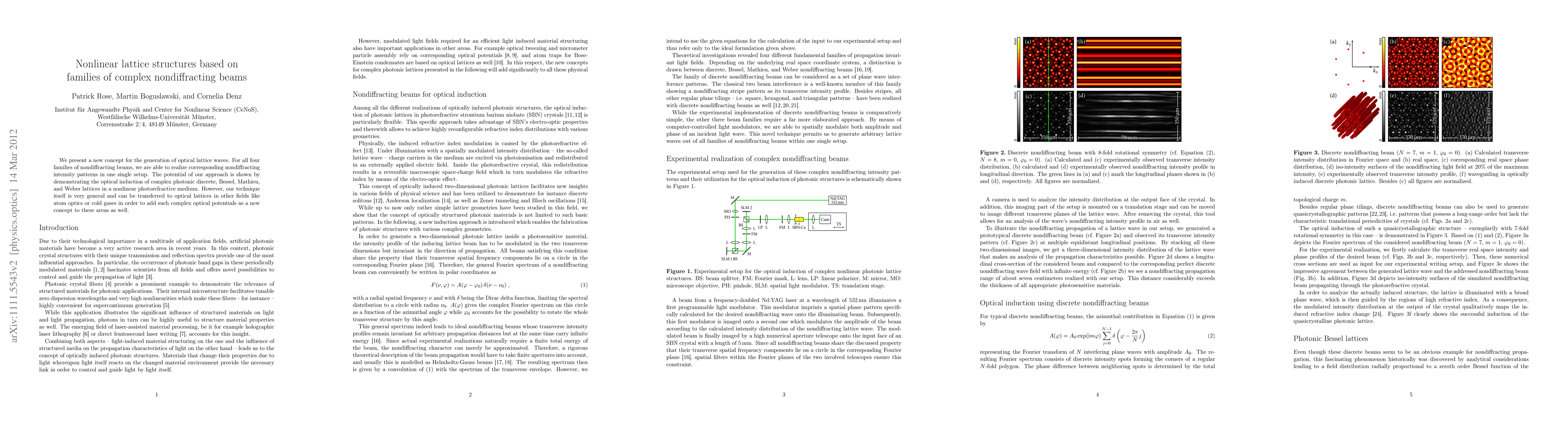 We present a new concept for the generation of optical lattice waves. For all four families of nondiffracting beams, we are able to realize corresponding nondiffracting intensity patterns in one single setup. The potential of our approach is shown by demonstrating the optical induction of complex photonic discrete, Bessel, Mathieu, and Weber lattices in a nonlinear photorefractive medium. However, our technique itself is very general and can be transferred to optical lattices in other fields like atom optics or cold gases in order to add such complex optical potentials as a new concept to these areas as well.