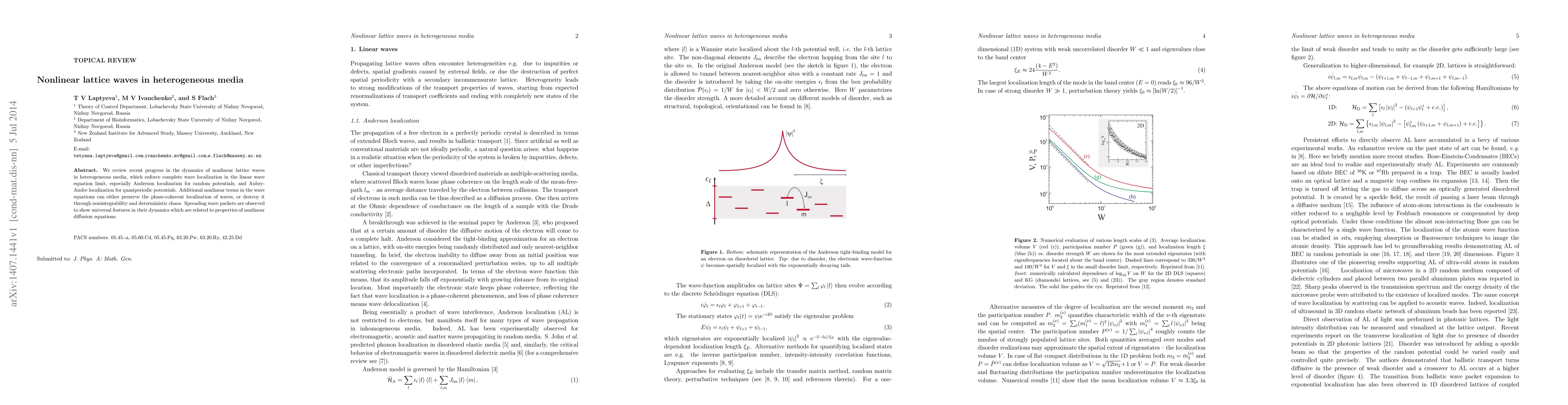 This paper reviews recent advancements in the dynamics of nonlinear lattice waves in heterogeneous media, focusing on wave localization phenomena such as Anderson and Aubry-Andre localization. The study highlights how nonlinear terms can either maintain or disrupt phase-coherent localization, leading to universal features in wave packet dynamics akin to nonlinear diffusion equations.