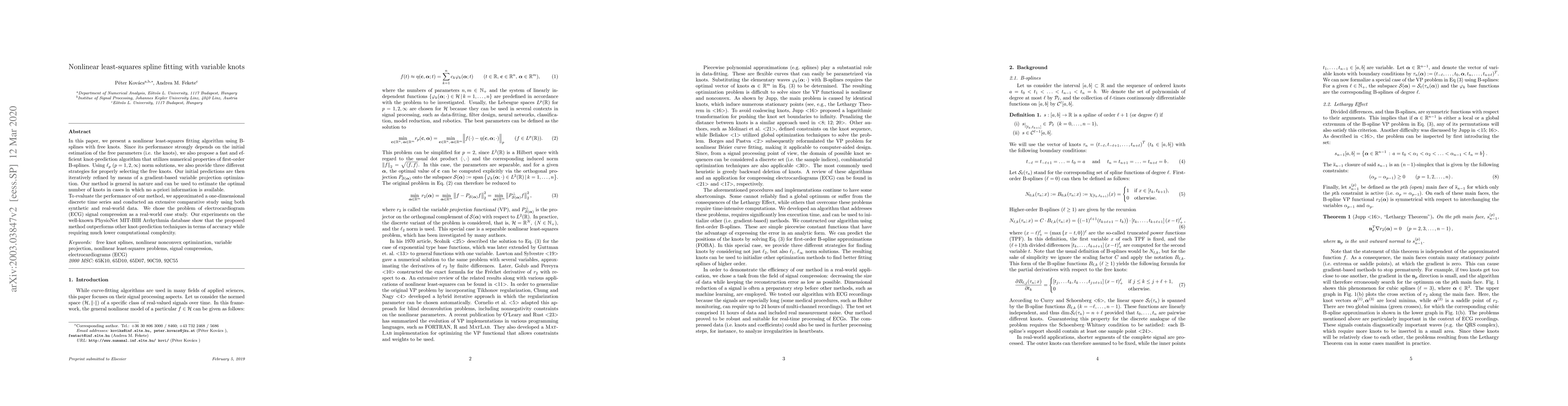 This paper introduces a nonlinear least-squares fitting method using B-splines with free knots, enhanced by a fast knot-prediction algorithm and iterative refinement. The method is shown to outperform other techniques in fitting ECG signals from the MIT-BIH Arrhythmia database, achieving better accuracy with lower computational complexity.