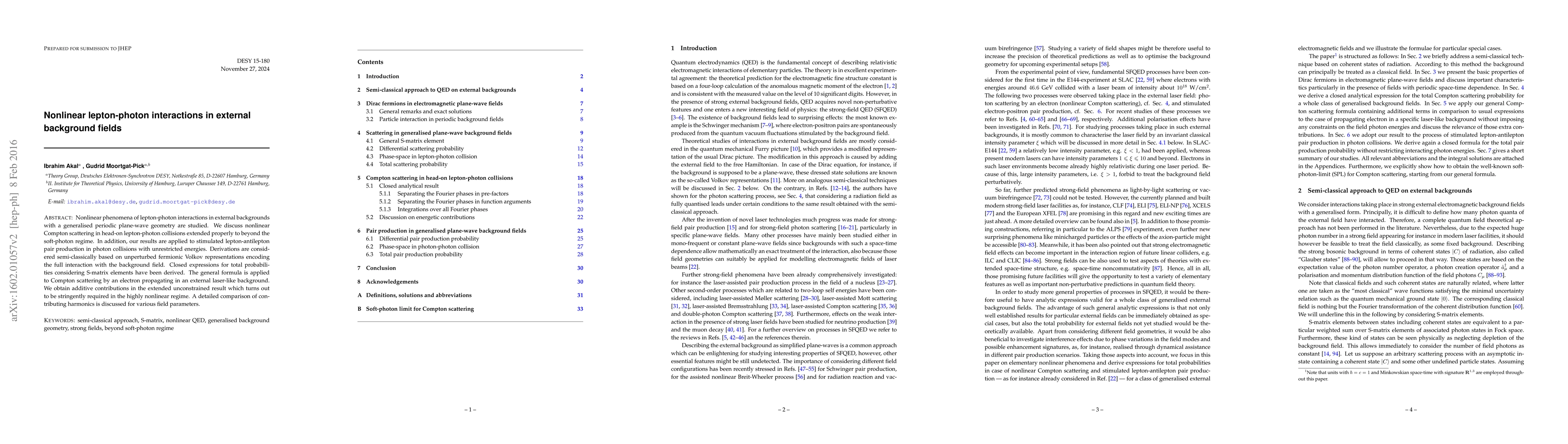 Researchers studied nonlinear interactions between leptons and photons in external background fields, discovering additive contributions that become necessary in highly nonlinear regimes.