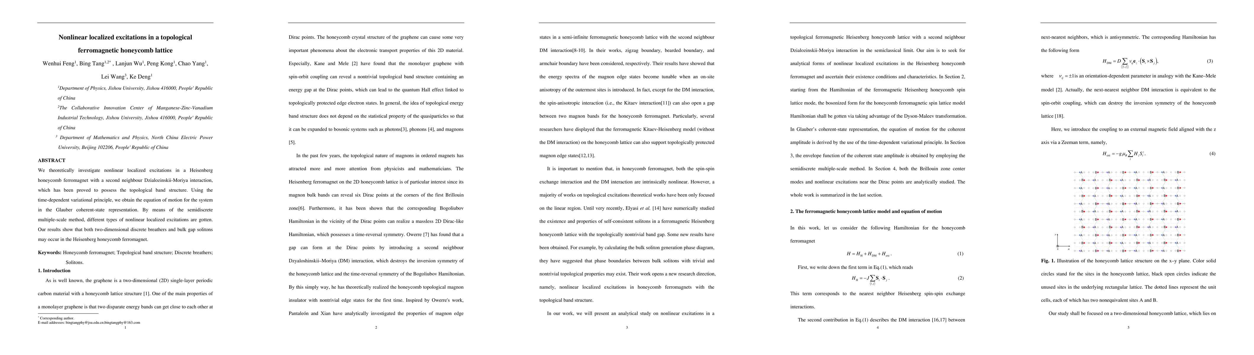 This paper investigates nonlinear localized excitations in a topological ferromagnetic honeycomb lattice, revealing the occurrence of two-dimensional discrete breathers and bulk gap solitons through the time-dependent variational principle and semidiscrete multiple-scale method.