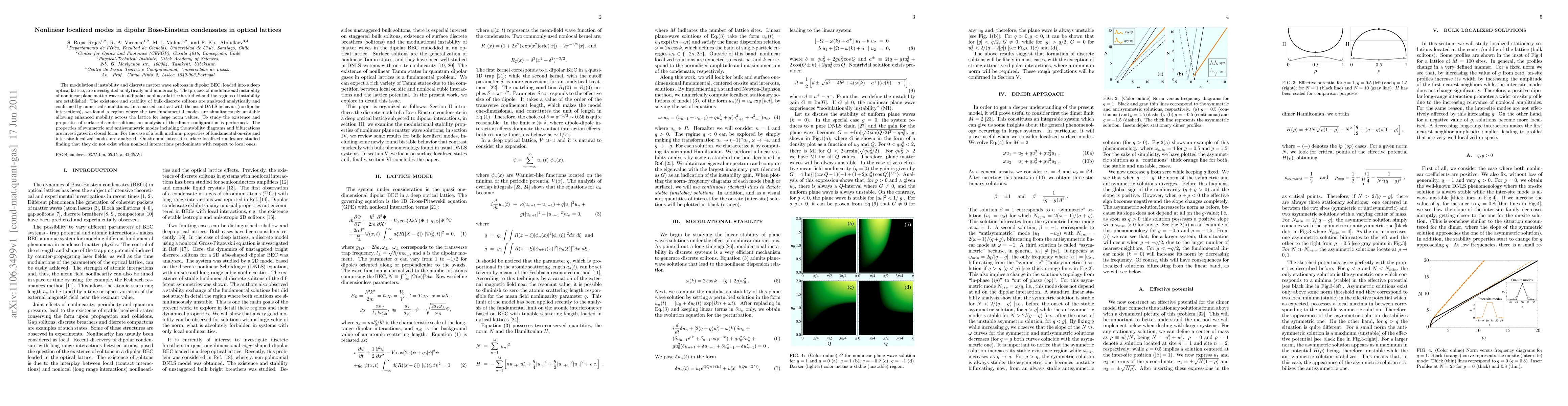 The modulational instability and discrete matter wave solitons in dipolar BEC, loaded into a deep optical lattice, are investigated analytically and numerically. The process of modulational instability of nonlinear plane matter waves in a dipolar nonlinear lattice is studied and the regions of instability are established. The existence and stability of bulk discrete solitons are analyzed analytically and confirmed by numerical simulations. In a marked contrast with the usual DNLS behavior (no dipolar interactions), we found a region where the two fundamental modes are simultaneously unstable allowing enhanced mobility across the lattice for large norm values. To study the existence and properties of surface discrete solitons, an analysis of the dimer configuration is performed. The properties of symmetric and antisymmetric modes including the stability diagrams and bifurcations are investigated in closed form. For the case of a bulk medium, properties of fundamental on-site and inter-site localized modes are analyzed. On-site and inter-site surface localized modes are studied finding that they do not exist when nonlocal interactions predominate with respect to local ones.