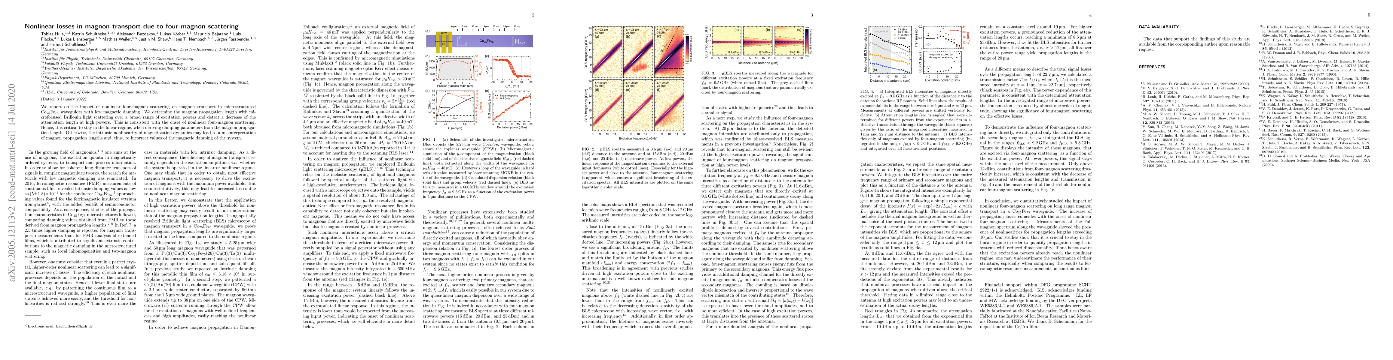 This study investigates the effect of nonlinear four-magnon scattering on magnon transport in Co25Fe75 waveguides, finding that high excitation powers reduce the magnon propagation length due to this scattering. It emphasizes the importance of operating in the linear regime to accurately determine magnetic damping parameters.