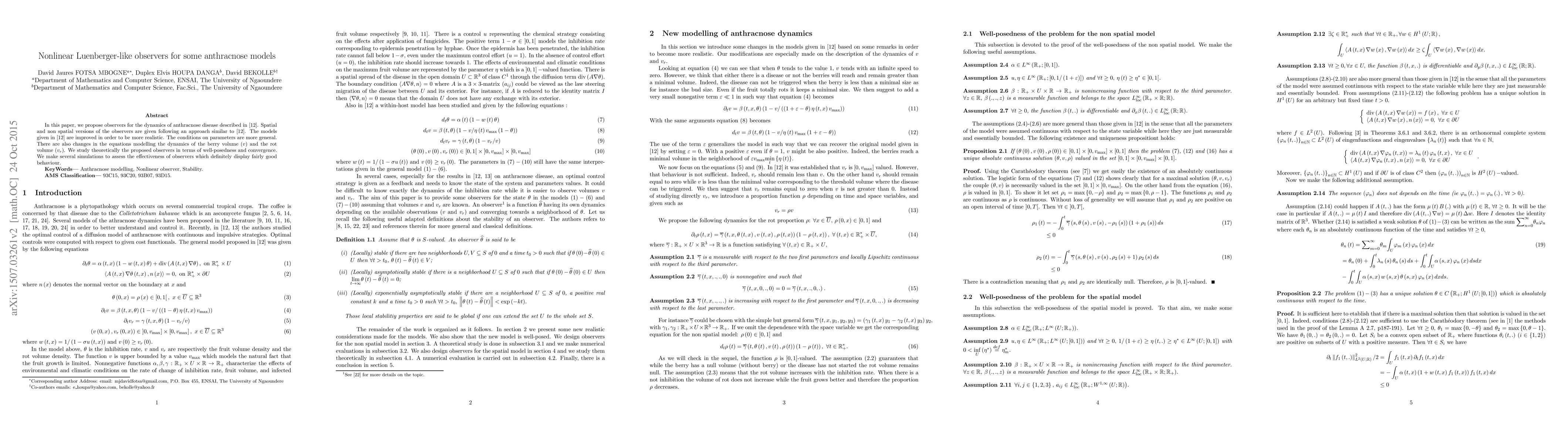 In this paper, we propose observers for the dynamics of anthracnose disease described in [12]. Spatial and non spatial versions of the observers are given following an approach similar to [12]. The models given in [12] are improved in order to be more realistic. The conditions on parameters are more general. There are also changes in the equations modelling the dynamics of the berry volume (v) and the rot volume (v_r). We study theoretically the proposed observers in terms of well-posedness and convergence. We make several simulations to assess the effectiveness of observers which definitely display fairly good behaviour.