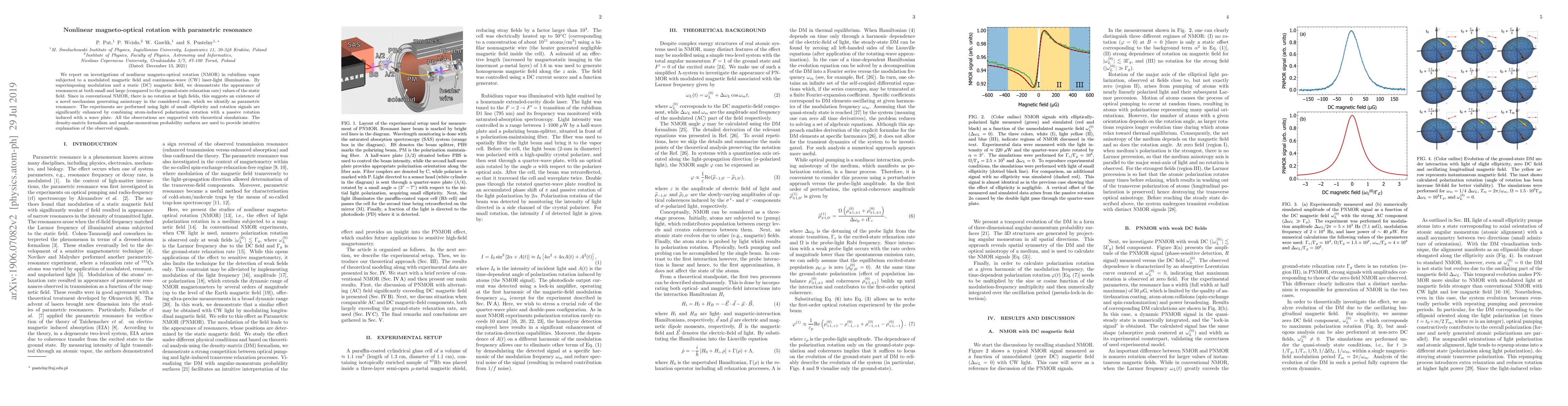 This paper investigates nonlinear magneto-optical rotation in rubidium vapor under modulated magnetic fields and CW laser light, revealing resonances at various magnetic field strengths, indicating a novel parametric resonance mechanism. Theoretical simulations using density-matrix formalism explain the observed enhanced rotation signals.