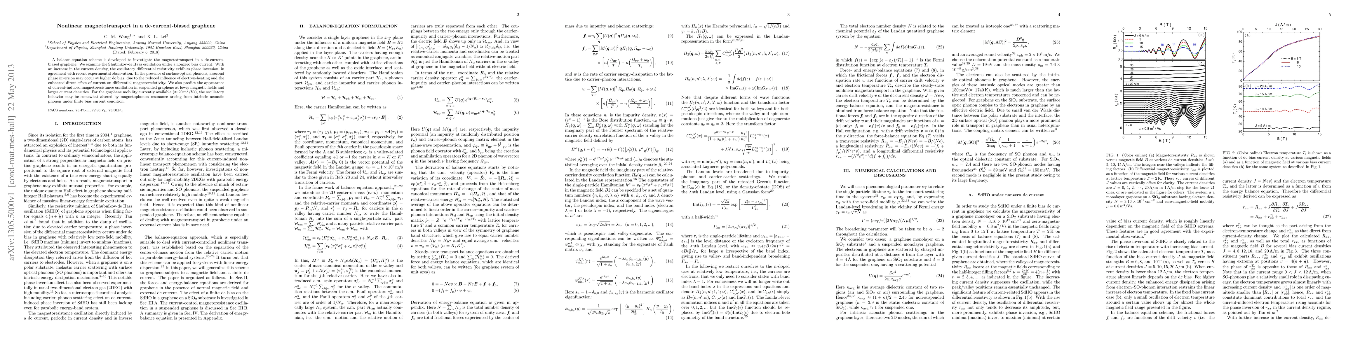 This paper develops a balance-equation scheme to study magnetotransport in dc-current-biased graphene, revealing phase inversion in Shubnikov-de Haas oscillations with increased current density. It also predicts a second phase inversion due to surface optical phonons and current-induced magnetoresistance oscillations under specific conditions.