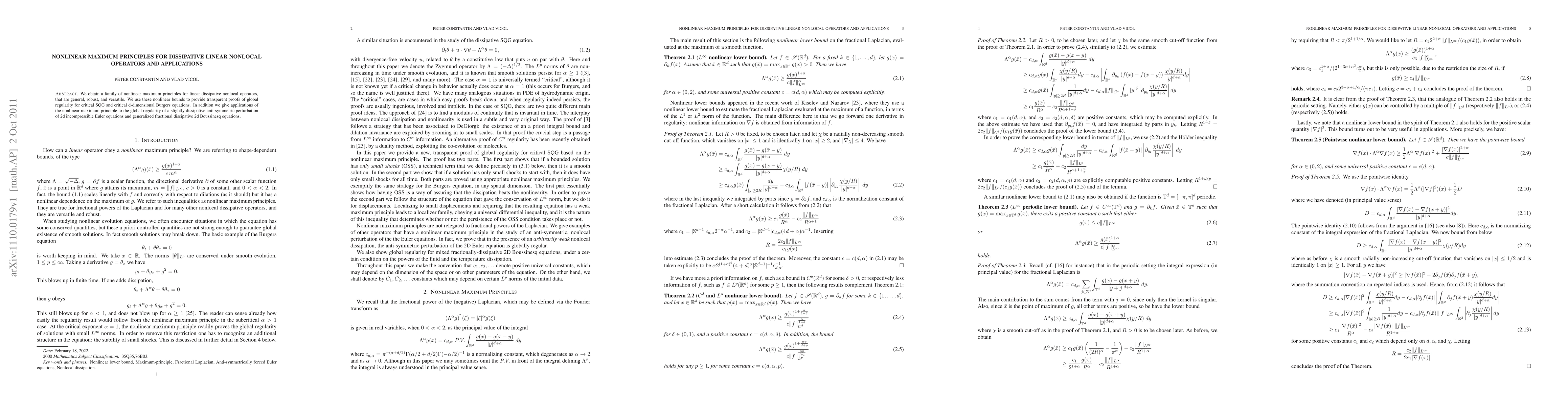 We obtain a family of nonlinear maximum principles for linear dissipative nonlocal operators, that are general, robust, and versatile. We use these nonlinear bounds to provide transparent proofs of global regularity for critical SQG and critical d-dimensional Burgers equations. In addition we give applications of the nonlinear maximum principle to the global regularity of a slightly dissipative anti-symmetric perturbation of 2d incompressible Euler equations and generalized fractional dissipative 2d Boussinesq equations.