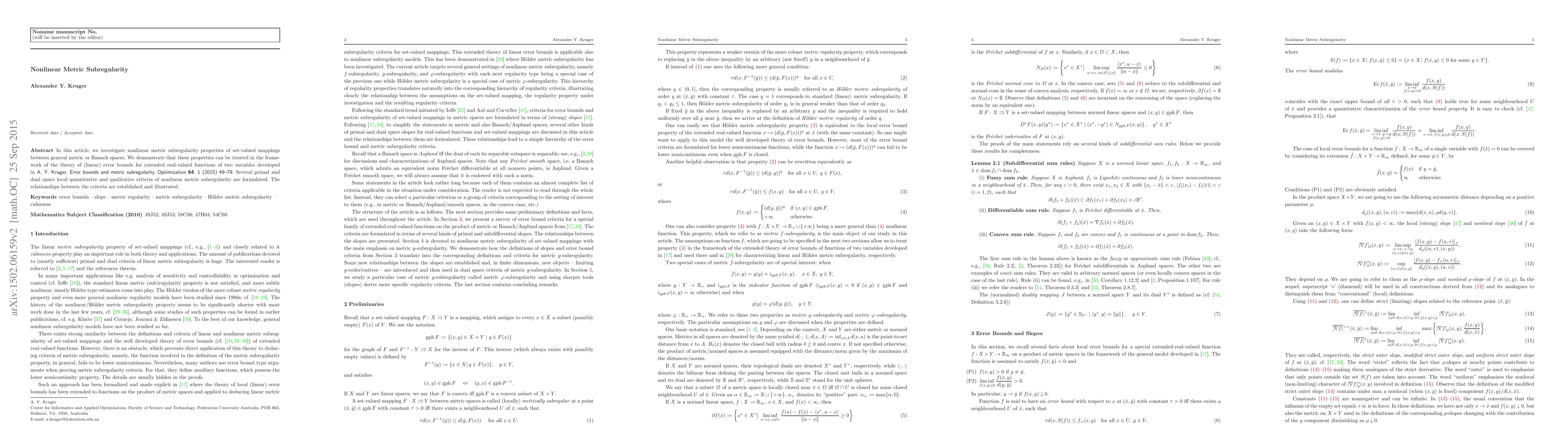 This paper explores nonlinear metric subregularity in set-valued mappings across metric or Banach spaces, linking these properties to linear error bounds for extended real-valued functions. It formulates criteria and demonstrates relationships between them, building on prior work by A. Y. Kruger.