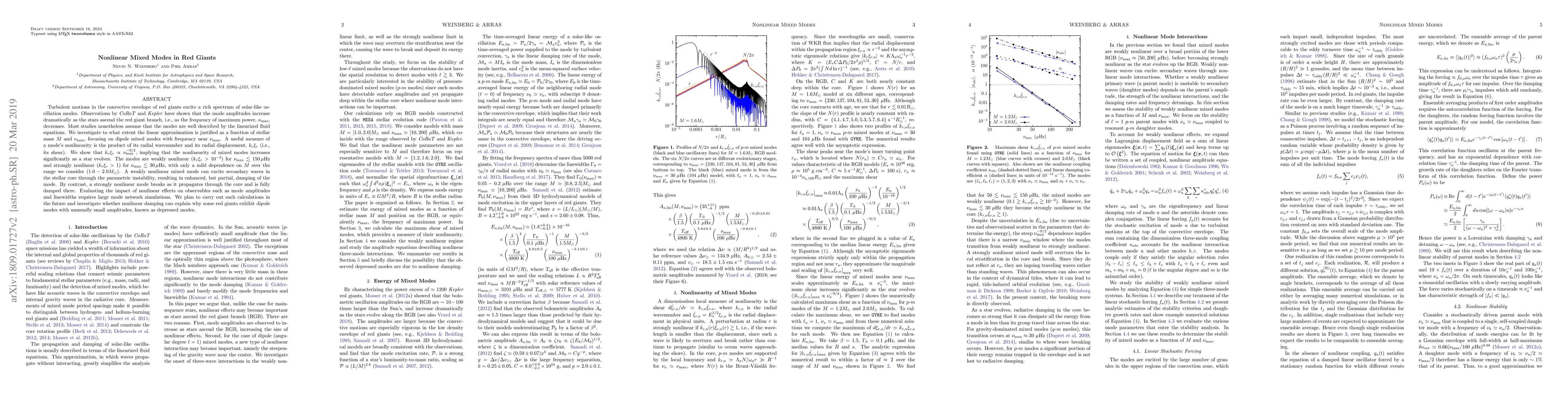 Turbulent motions in the convective envelope of red giants excite a rich spectrum of solar-like oscillation modes. Observations by CoRoT and Kepler have shown that the mode amplitudes increase dramatically as the stars ascend the red giant branch, i.e., as the frequency of maximum power, $\nu_\mathrm{max}$, decreases. Most studies nonetheless assume that the modes are well described by the linearized fluid equations. We investigate to what extent the linear approximation is justified as a function of stellar mass $M$ and $\nu_\mathrm{max}$, focusing on dipole mixed modes with frequency near $\nu_\mathrm{max}$. A useful measure of a mode's nonlinearity is the product of its radial wavenumber and its radial displacement, $k_r \xi_r$ (i.e., its shear). We show that $k_r \xi_r \propto \nu_\mathrm{max}^{-9/2}$, implying that the nonlinearity of mixed modes increases significantly as a star evolves. The modes are weakly nonlinear ($k_r \xi_r > 10^{-3}$) for $\nu_\mathrm{max} \lesssim 150 \, \mu\mathrm{Hz}$ and strongly nonlinear ($k_r \xi_r > 1$) for $\nu_\mathrm{max} \lesssim 30 \, \mu\mathrm{Hz}$, with only a mild dependence on $M$ over the range we consider ($1.0 - 2.0 M_\odot$). A weakly nonlinear mixed mode can excite secondary waves in the stellar core through the parametric instability, resulting in enhanced, but partial, damping of the mode. By contrast, a strongly nonlinear mode breaks as it propagates through the core and is fully damped there. Evaluating the impact of nonlinear effects on observables such as mode amplitudes and linewidths requires large mode network simulations. We plan to carry out such calculations in the future and investigate whether nonlinear damping can explain why some red giants exhibit dipole modes with unusually small amplitudes, known as depressed modes.