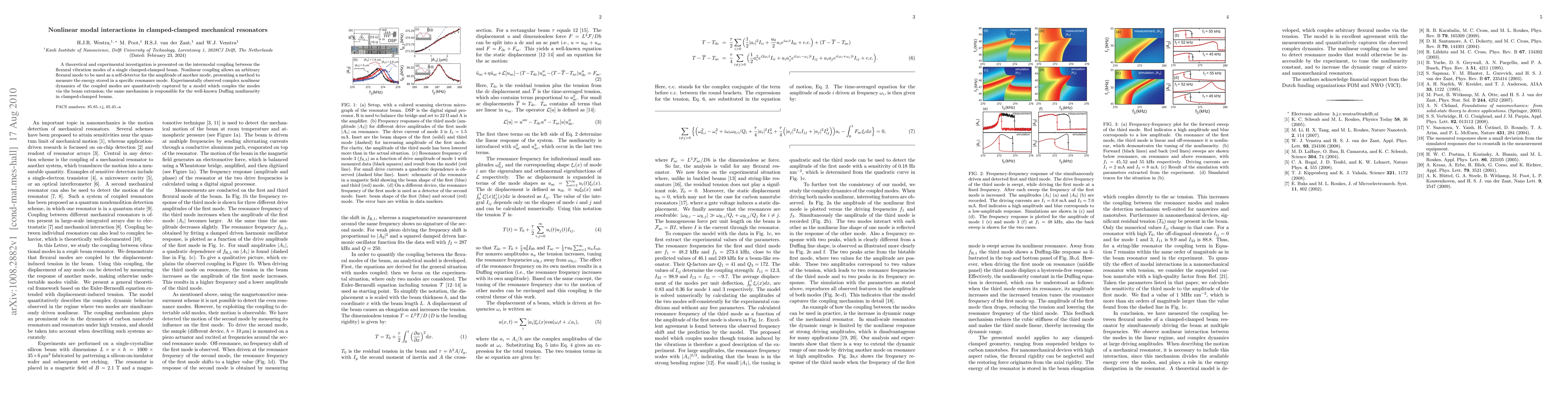 This paper investigates nonlinear modal interactions in clamped-clamped beams, demonstrating how nonlinear coupling can measure the energy of one flexural mode using another as a self-detector. Experimental observations of complex dynamics are modeled by a theoretical framework that links the modes via beam extension, mirroring the Duffing nonlinearity.