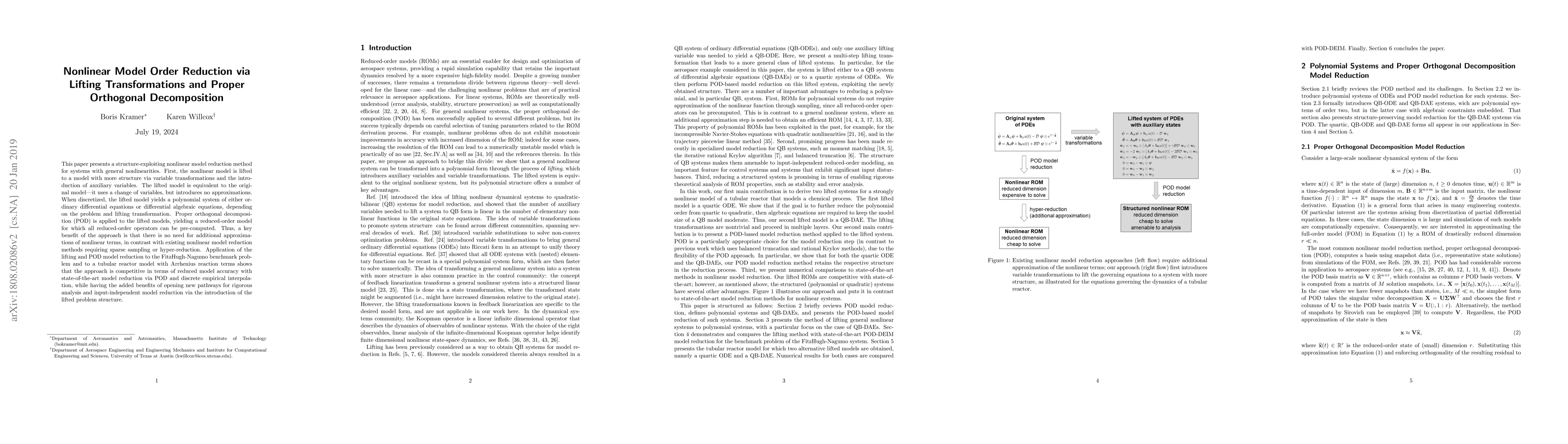 This paper proposes a nonlinear model reduction technique using lifting transformations and proper orthogonal decomposition (POD) to create a structured, equivalent model without approximations. The method is shown to be competitive with state-of-the-art techniques while enabling rigorous analysis and input-independent reductions.