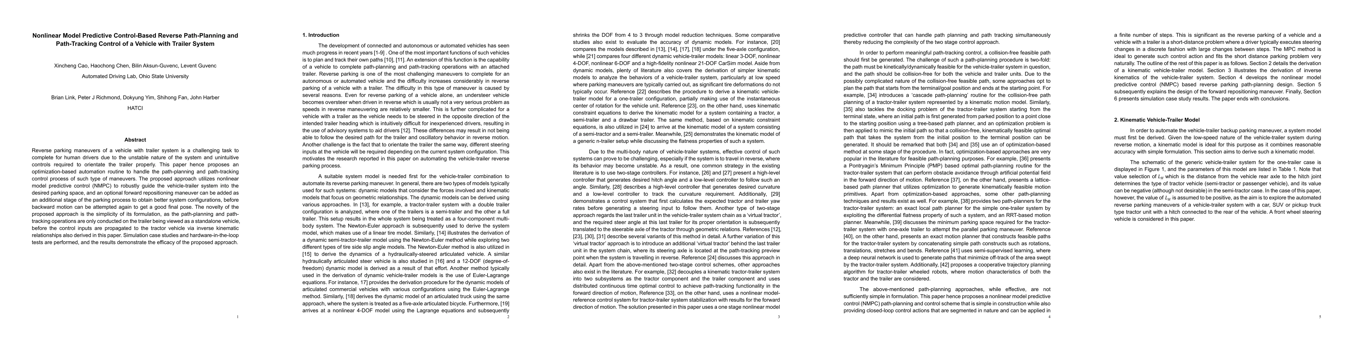 Reverse parking maneuvers of a vehicle with trailer system is a challenging task to complete for human drivers due to the unstable nature of the system and unintuitive controls required to orientate the trailer properly. This paper hence proposes an optimization-based automation routine to handle the path-planning and path-tracking control process of such type of maneuvers. The proposed approach utilizes nonlinear model predictive control (NMPC) to robustly guide the vehicle-trailer system into the desired parking space, and an optional forward repositioning maneuver can be added as an additional stage of the parking process to obtain better system configurations, before backward motion can be attempted again to get a good final pose. The novelty of the proposed approach is the simplicity of its formulation, as the path-planning and path-tracking operations are only conducted on the trailer being viewed as a standalone vehicle, before the control inputs are propagated to the tractor vehicle via inverse kinematic relationships also derived in this paper. Simulation case studies and hardware-in-the-loop tests are performed, and the results demonstrate the efficacy of the proposed approach.