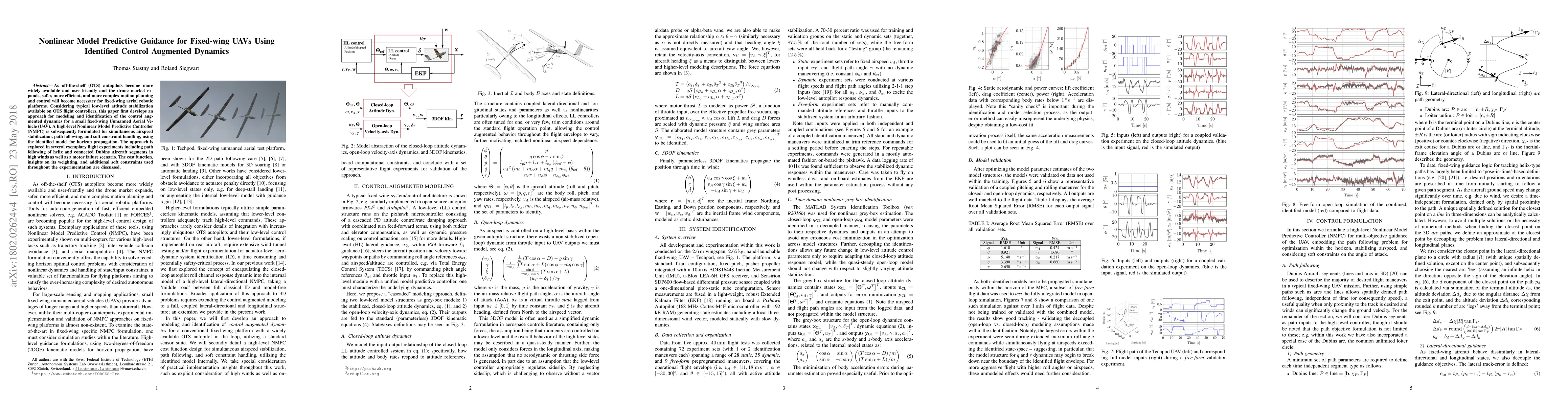 This paper develops a method for modeling and identifying control augmented dynamics for small fixed-wing UAVs, and formulates a Nonlinear Model Predictive Controller for efficient airspeed stabilization, path following, and handling soft constraints, validated through various flight experiments.