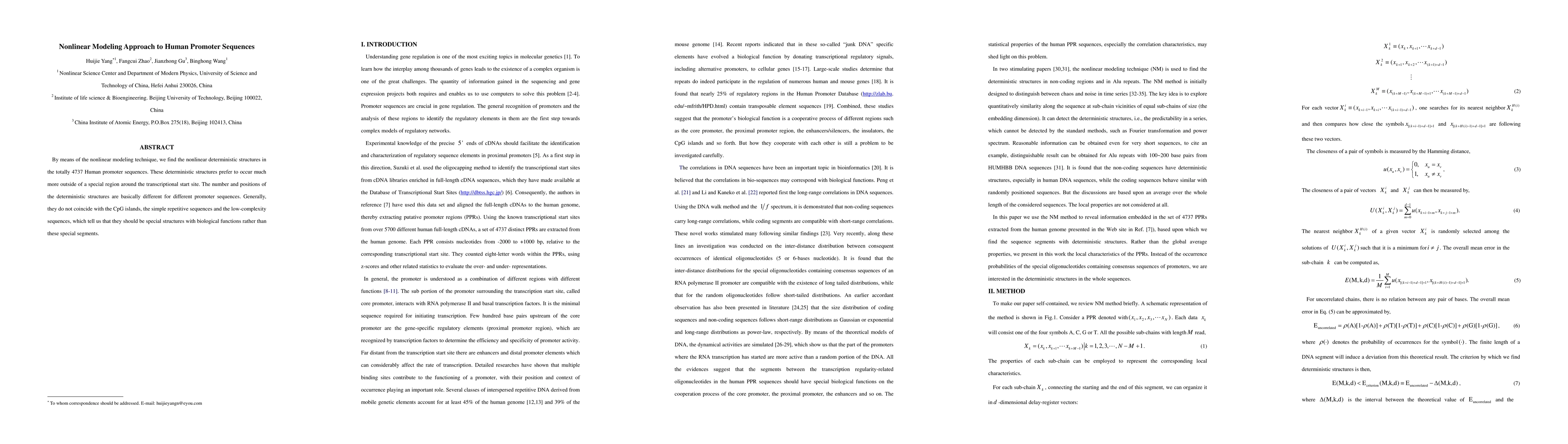 By means of the nonlinear modeling technique (NM technique), we find the nonlinear deterministic structures in the promoter regions (PPRs) of DNA sequences, called deterministic valleys (DVs) in this paper. These DVs prefer to occur much more outside of a special region around TSS. The number, positions and shapes of the DVs are basically different for different PPRs. Generally, these DVs do not occur in the CpG islands, which tells us that they should be special structures with new biological functions rather than the CpG islands. PACS numbers: 87.14.Gg, 87.10.1e, 05.45.2a