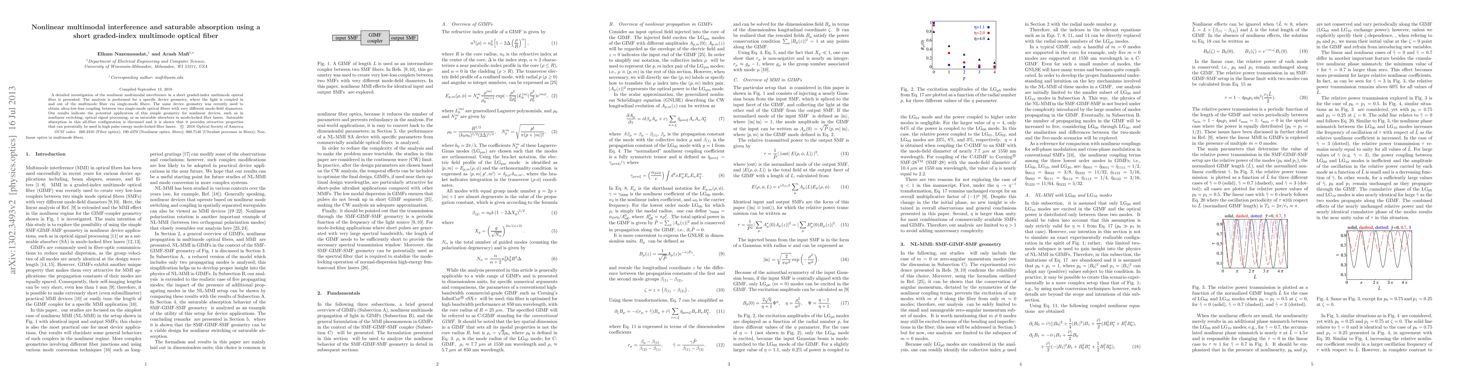 This paper investigates nonlinear multimodal interference in a short graded-index multimode optical fiber, demonstrating its potential for nonlinear devices and saturable absorption in mode-locked fiber lasers. The study highlights the device's attractive properties for applications in optical signal processing and nonlinear switching.
