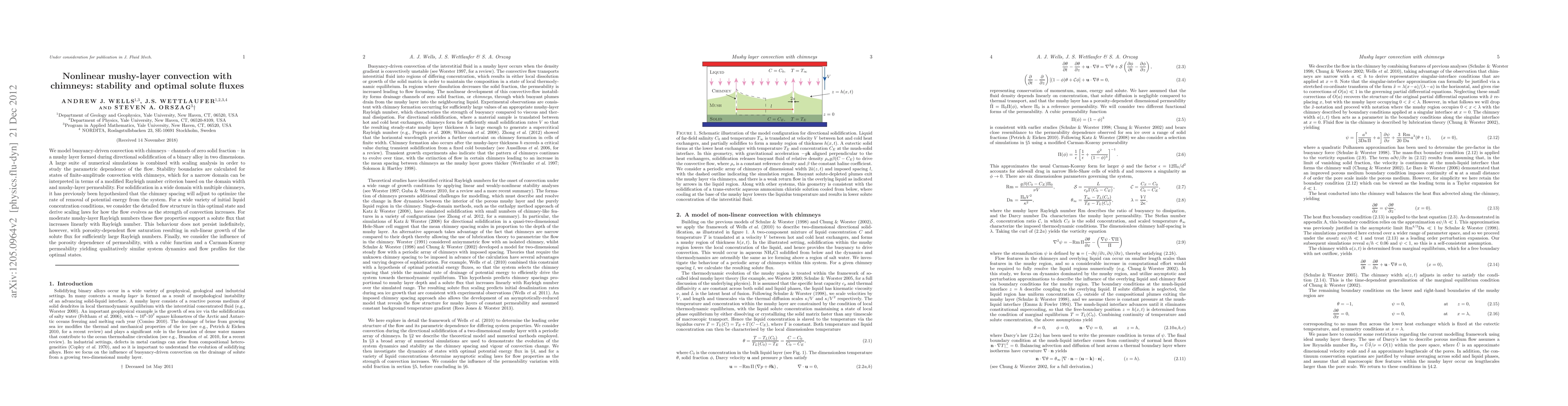 A numerical investigation of steady convection in mushy layers during directional solidification of binary alloys.