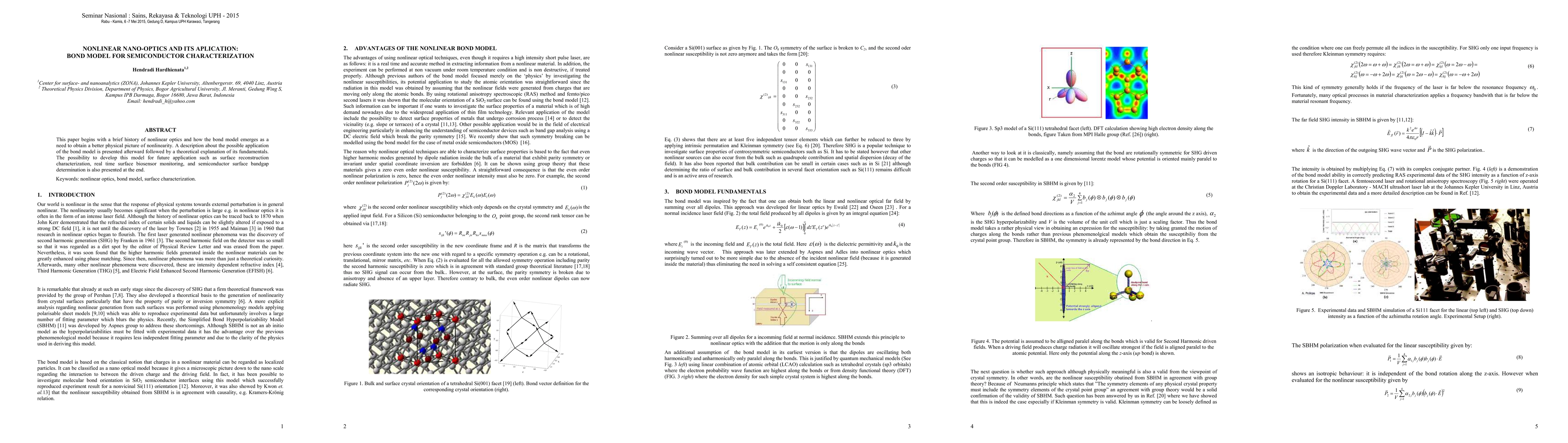 This paper begins with a brief history of nonlinear optics and how the bond model emerges as a need to obtain a better physical picture of nonlinearity. A description about the possible application of the bond model is presented afterward followed by a theoretical explanation of its fundamentals. The possibility to develop this model for future application such as surface reconstruction characterization, real time surface biosensor monitoring, and semiconductor surface bandgap determination is also presented at the end.