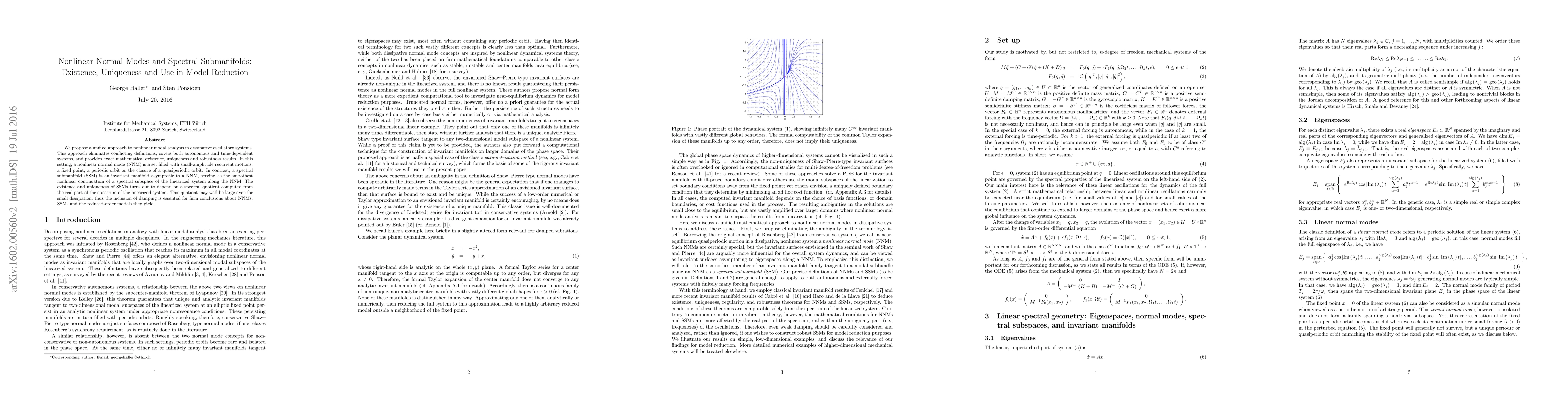 This paper presents a unified method for analyzing nonlinear modal behavior in dissipative oscillatory systems, establishing existence, uniqueness, and robustness of nonlinear normal modes (NNMs) and spectral submanifolds (SSMs). The SSMs serve as smooth extensions of linearized system spectral subspaces, crucial for effective model reduction.